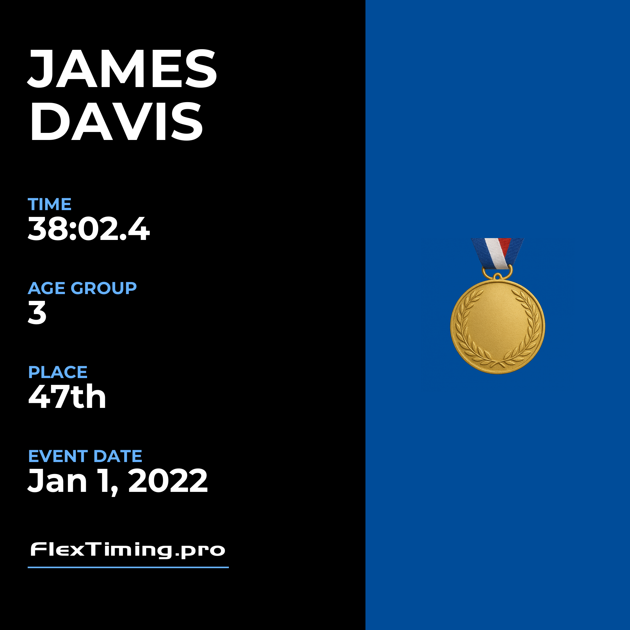 | Age Group Place: | 3 out of 3 Male in your Age Group. |