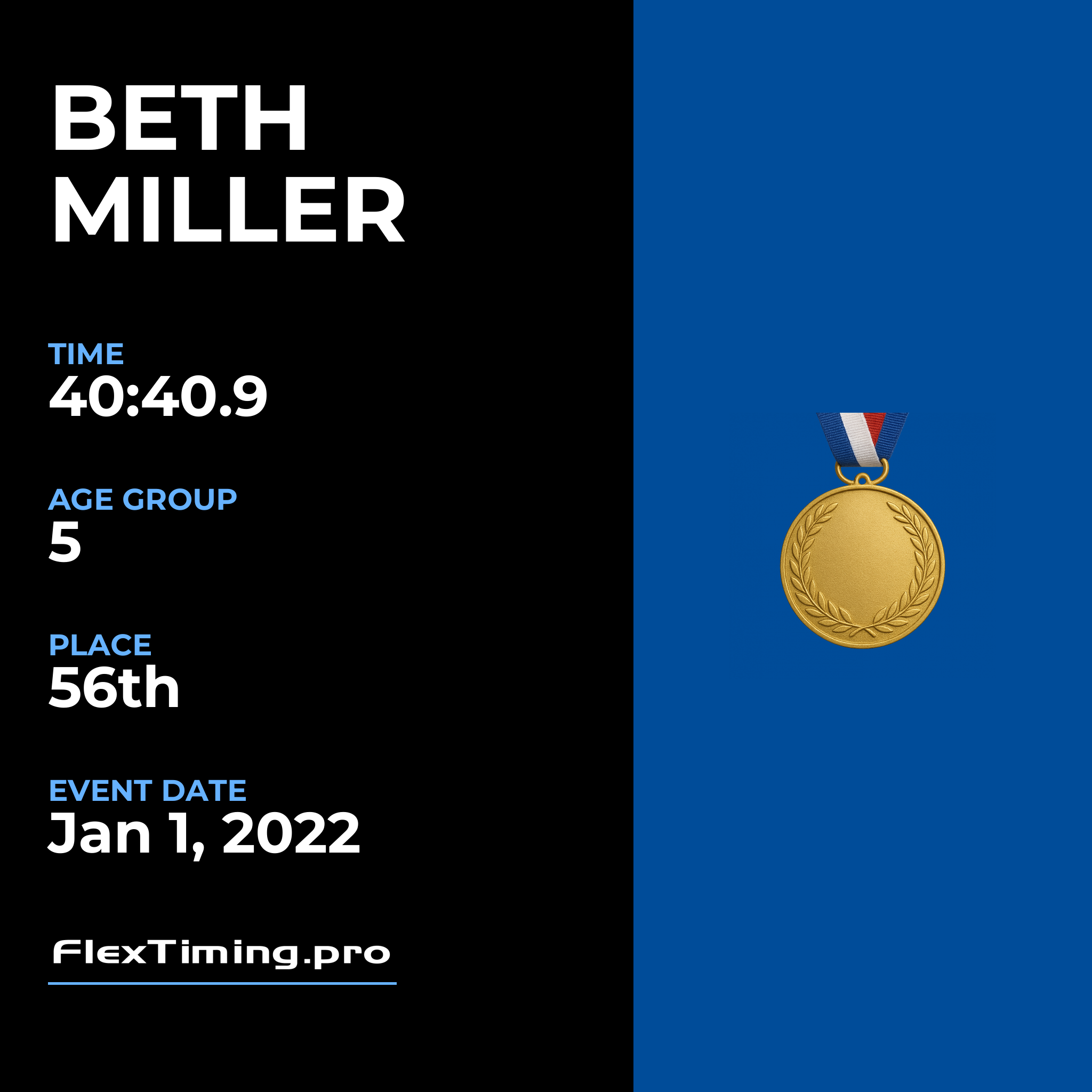 | Age Group Place: | 5 out of 6 Female in your Age Group. |