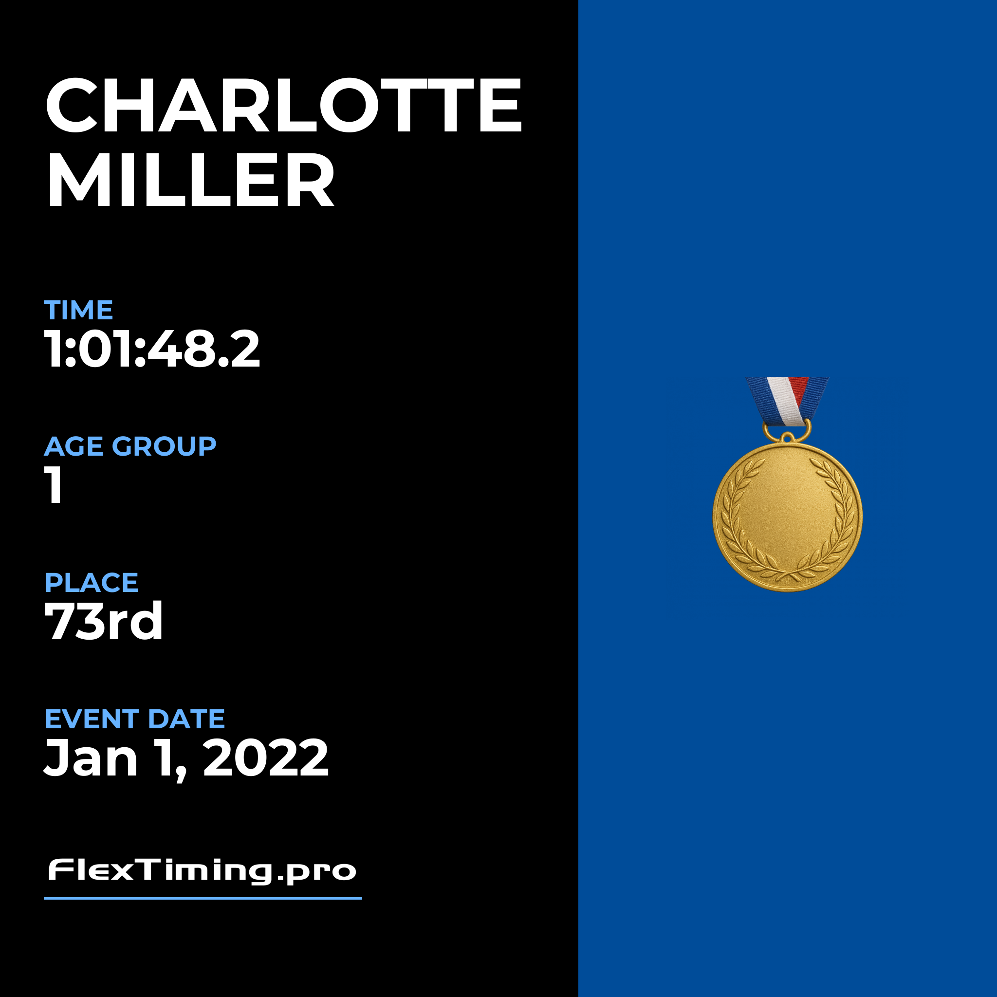 | Age Group Place: | 1 out of 1 Female in your Age Group. |