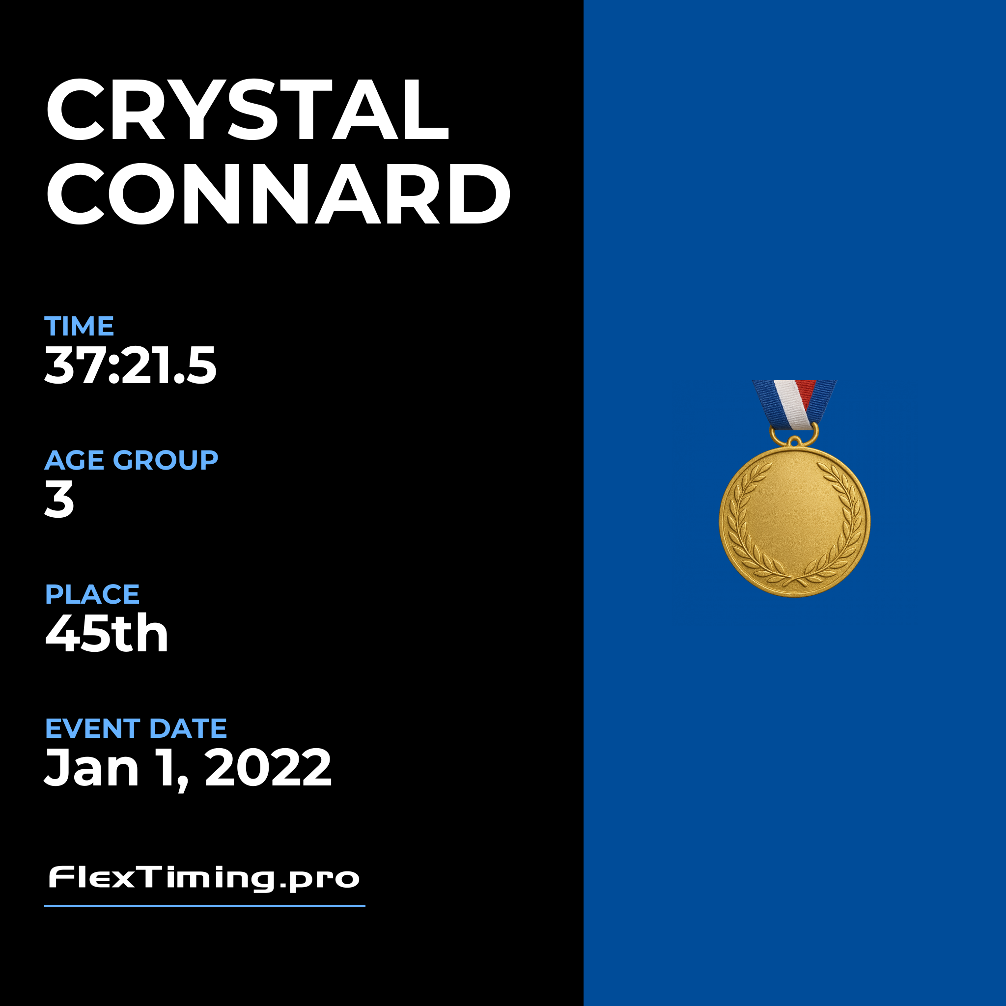 | Age Group Place: | 3 out of 5 Female in your Age Group. |