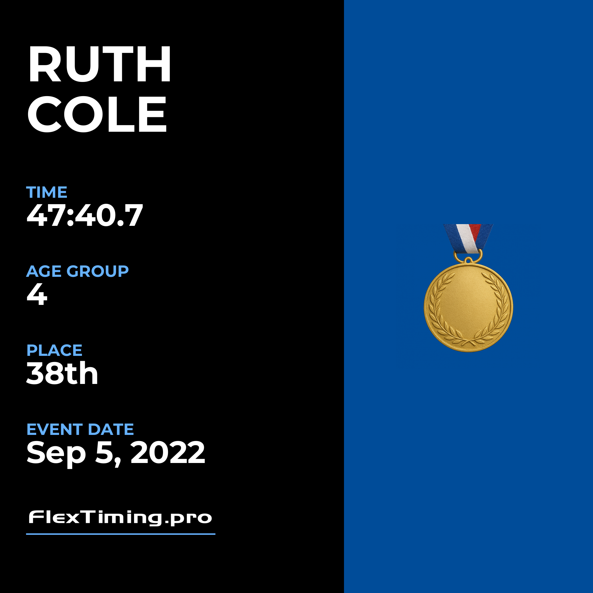 | Age Group Place: | 4 out of 4 Female in your Age Group. |