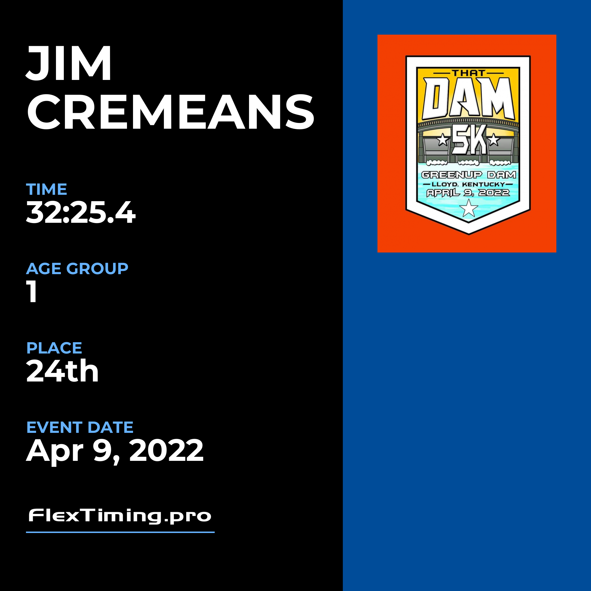 | Age Group Place: | 1 out of 1 Male in your Age Group. |
