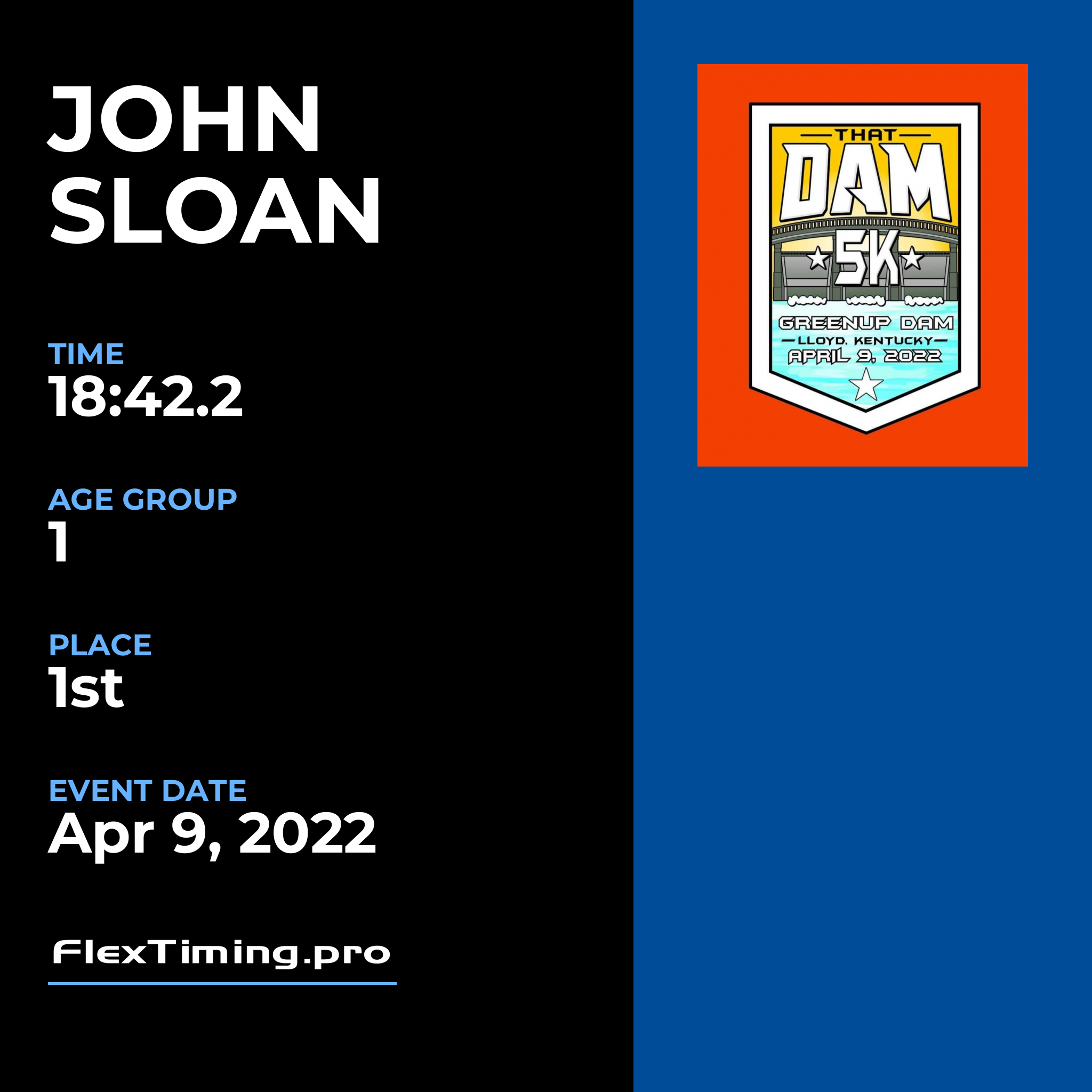 | Age Group Place: | 1 out of 2 Male in your Age Group. |