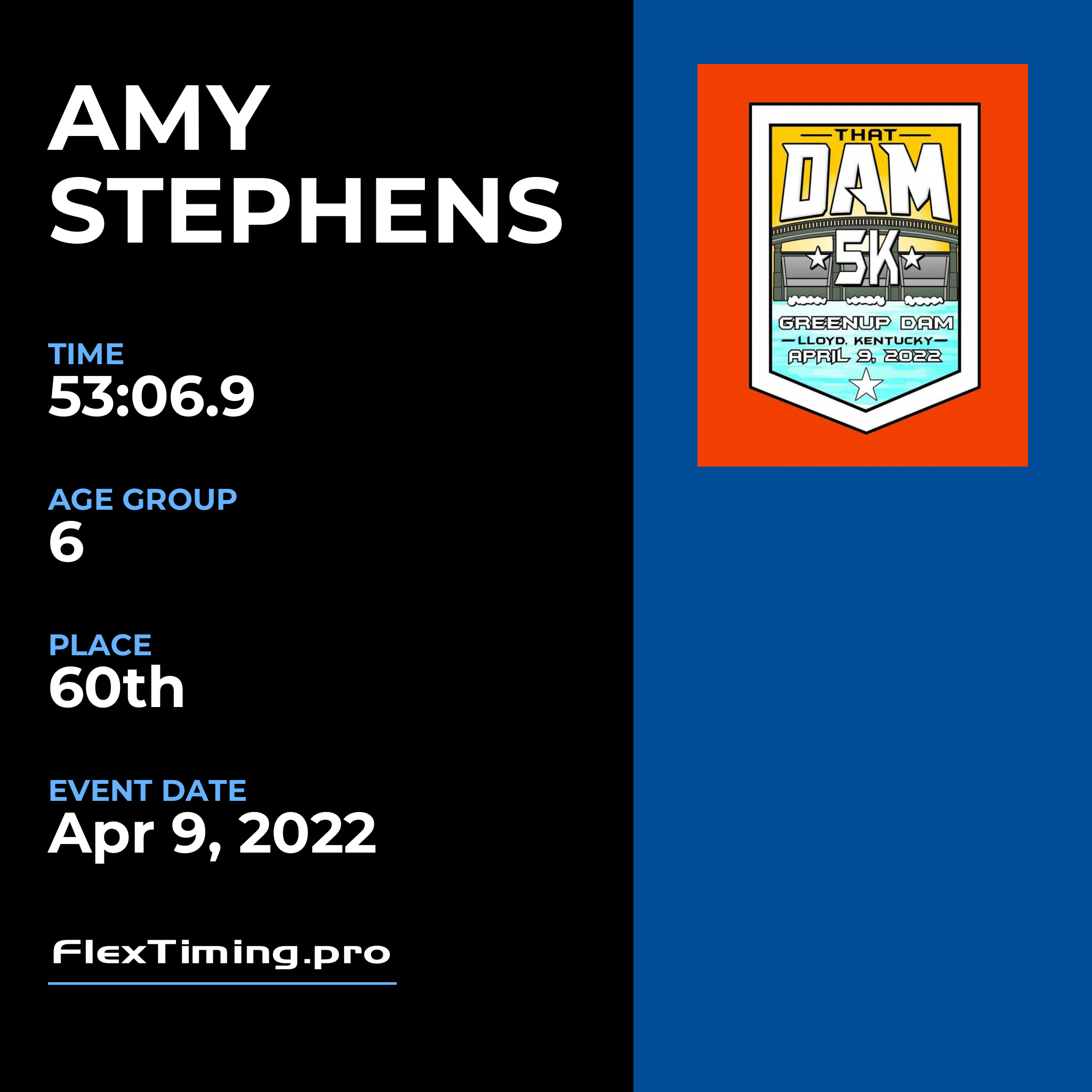 | Age Group Place: | 6 out of 7 Female in your Age Group. |