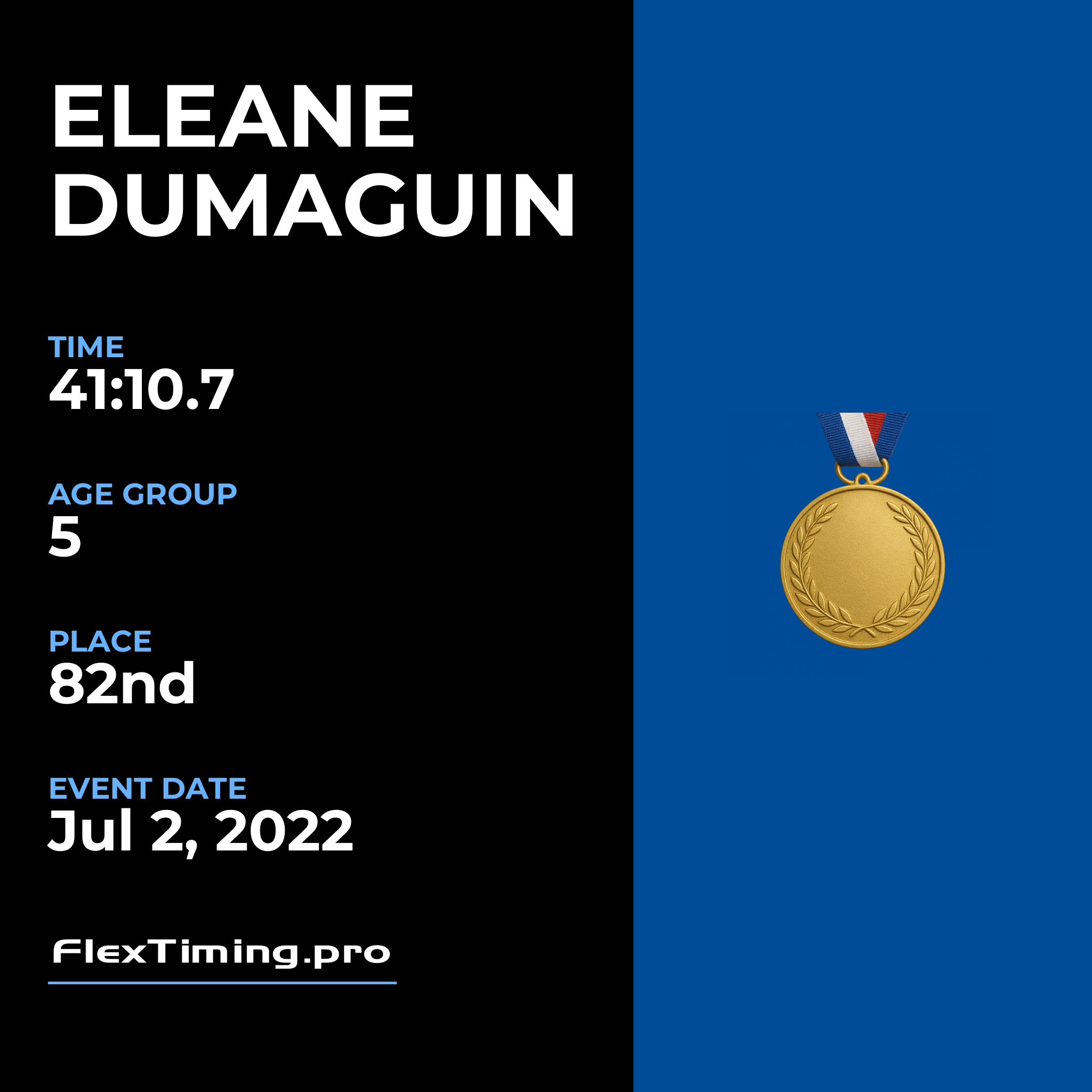 | Age Group Place: | 5 out of 5 Female in your Age Group. |