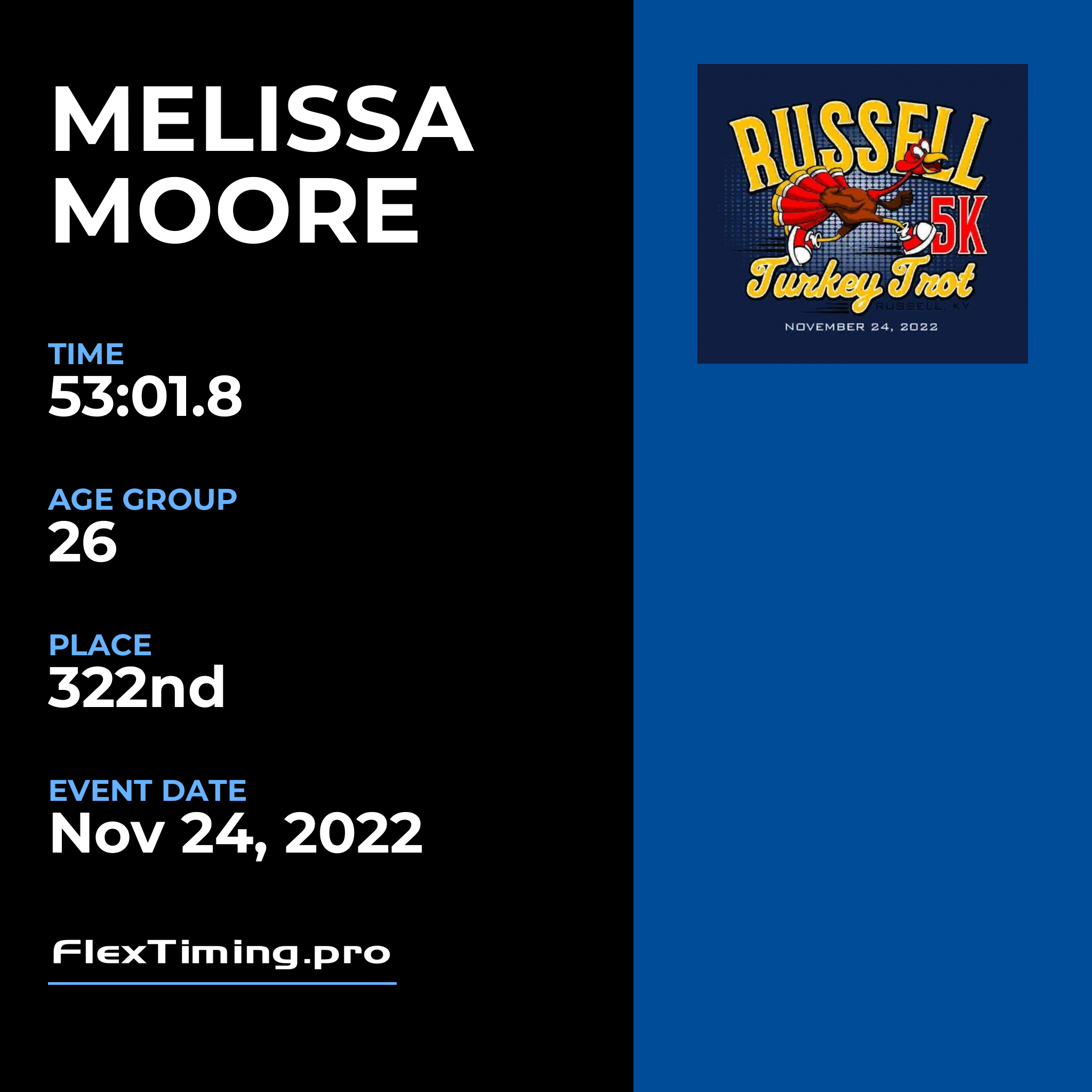 | Age Group Place: | 26 out of 26 Female in your Age Group. |