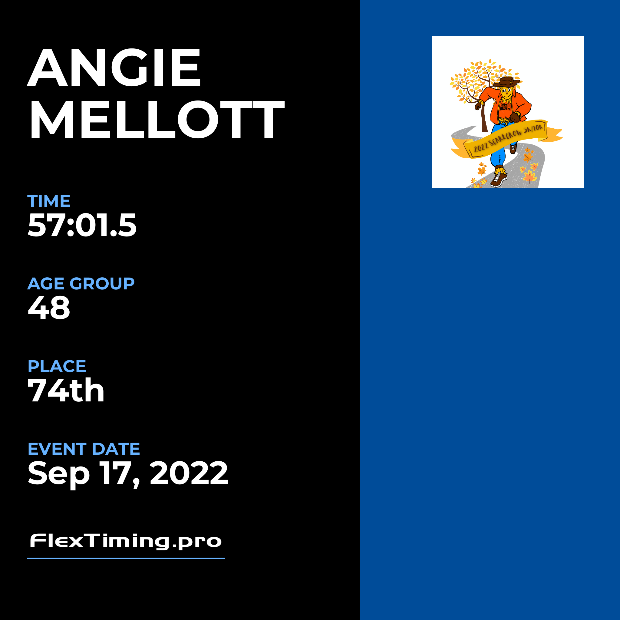 | Age Group Place: | 48 out of 69 Female in your Age Group. |