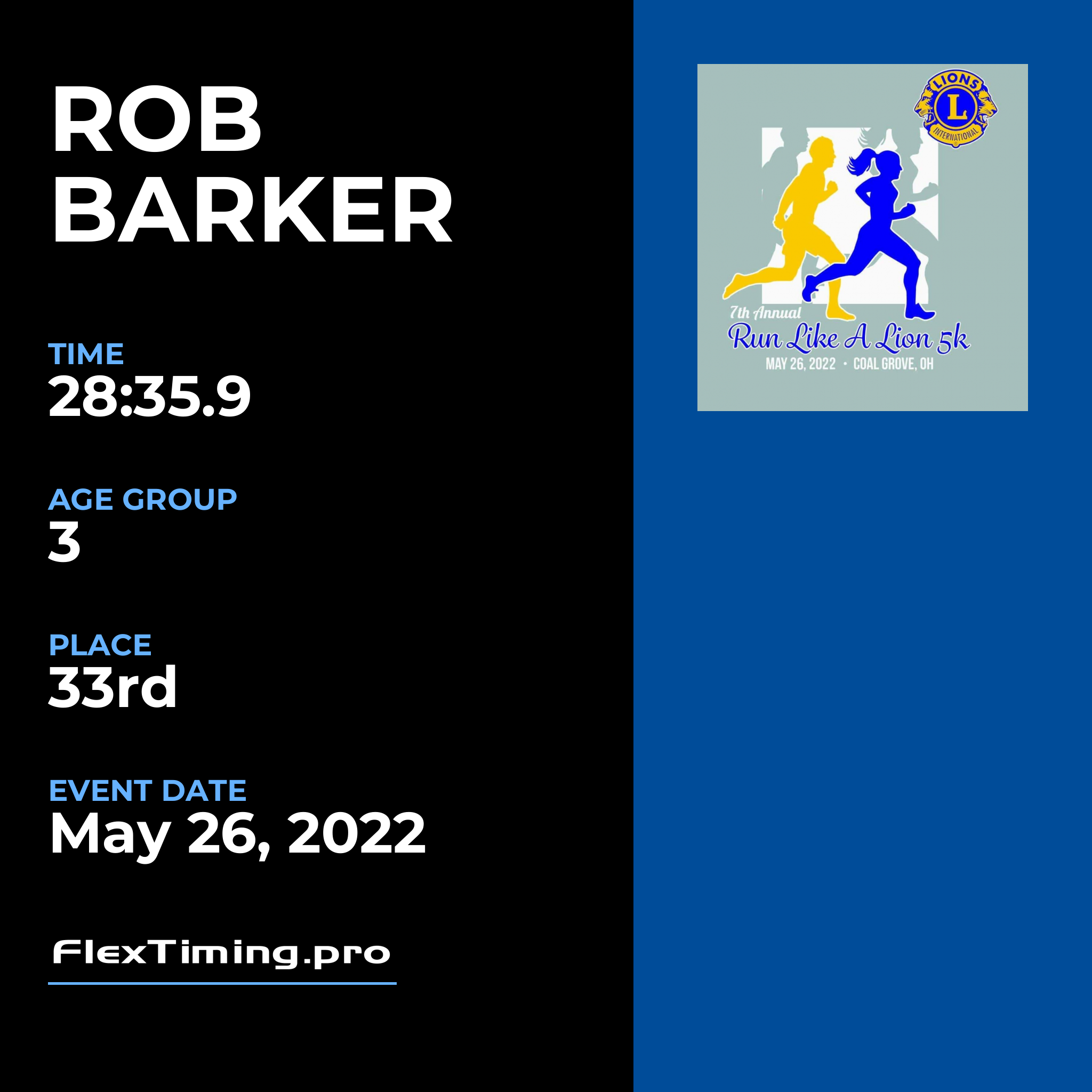 | Age Group Place: | 3 out of 5 Male in your Age Group. |