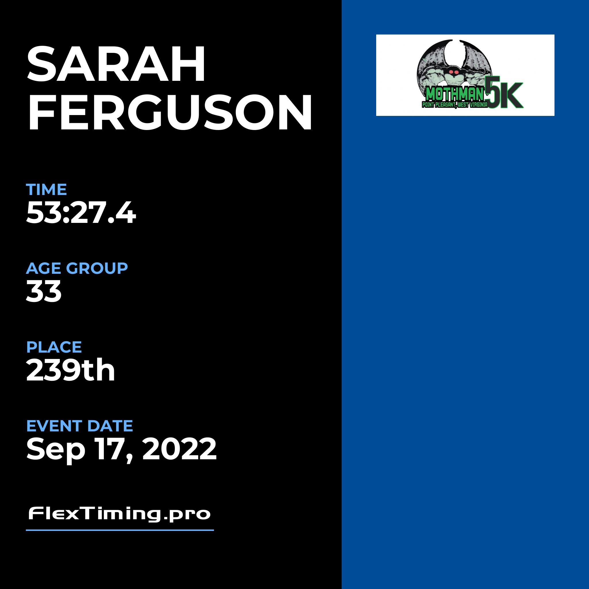 | Age Group Place: | 33 out of 34 Female in your Age Group. |