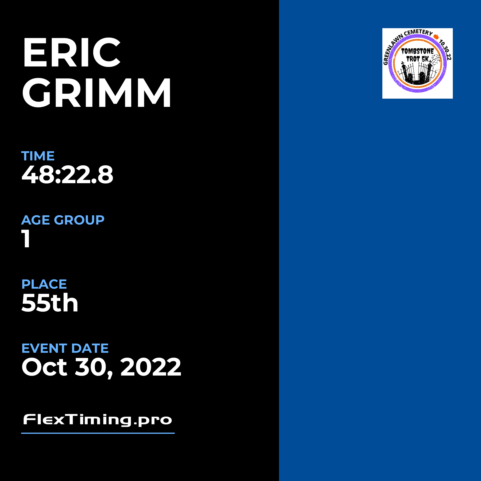 | Age Group Place: | 1 out of 1 Male in your Age Group. |