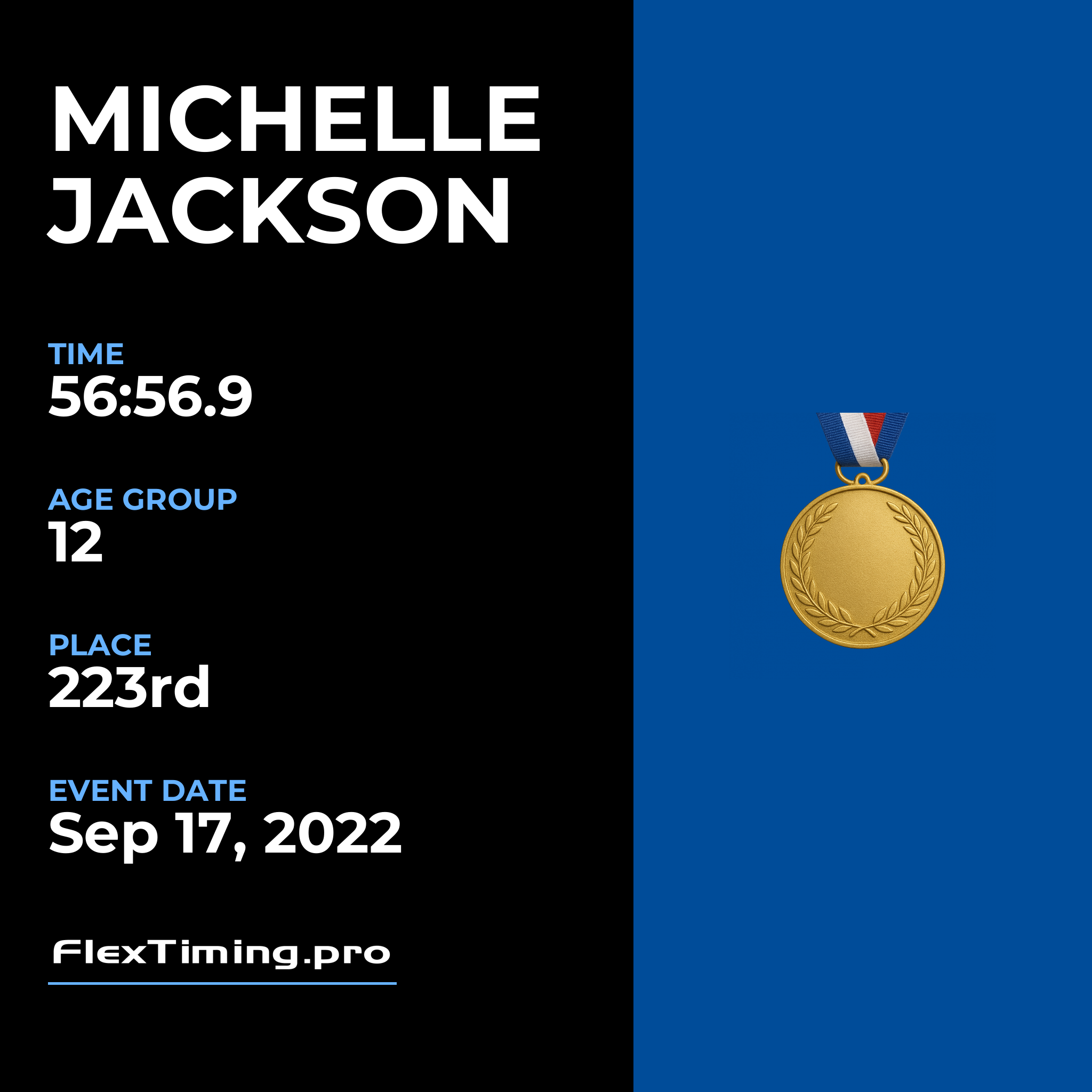 | Age Group Place: | 12 out of 12 Female in your Age Group. |