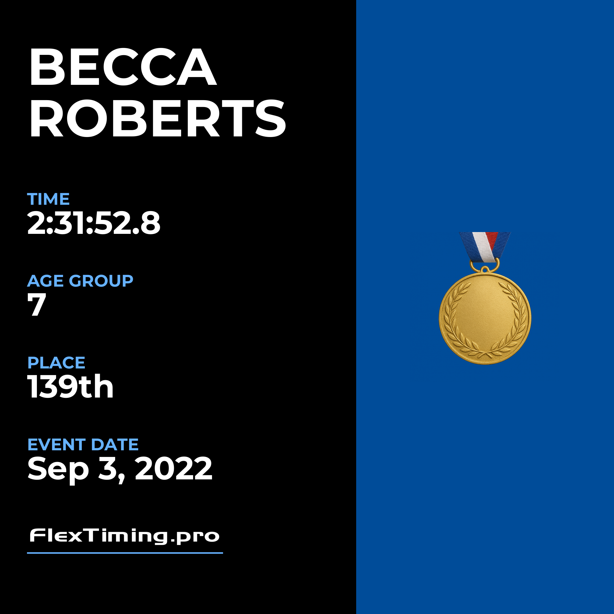 | Age Group Place: | 7 out of 15 Female in your Age Group. |