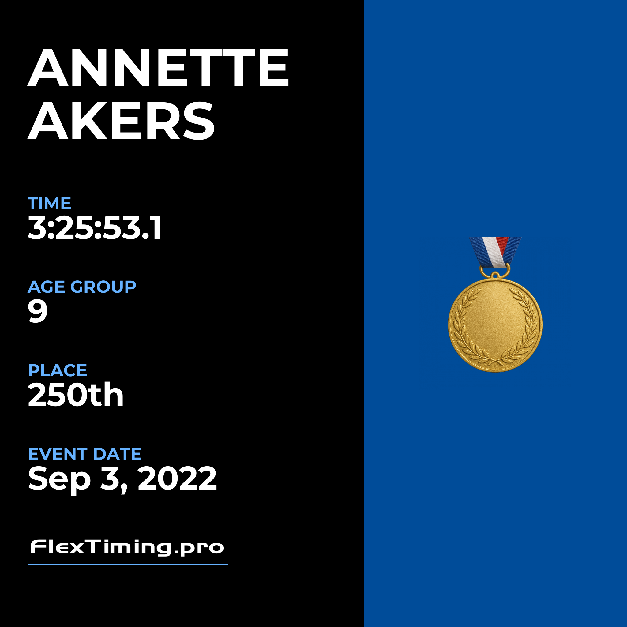 | Age Group Place: | 9 out of 13 Female in your Age Group. |