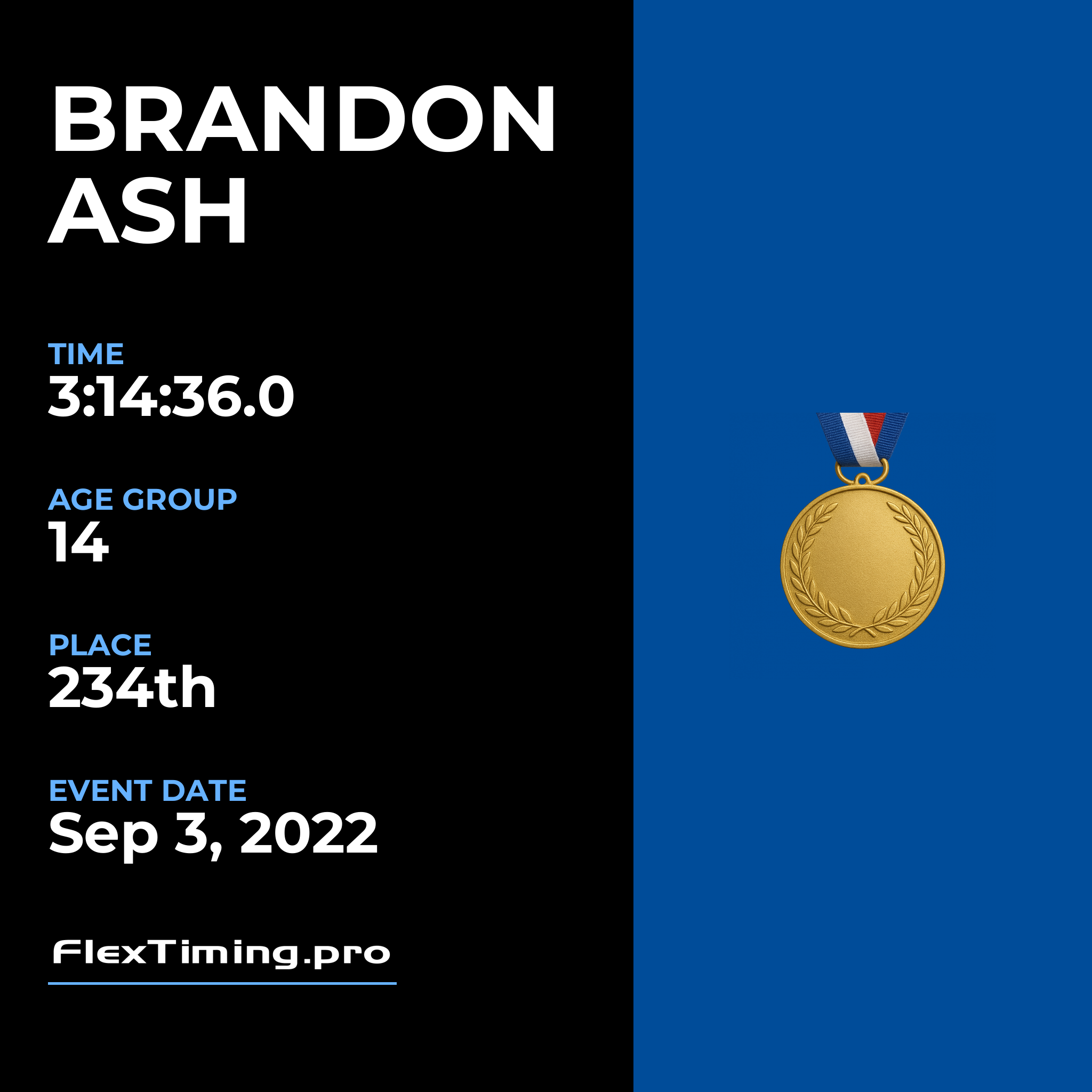| Age Group Place: | 14 out of 15 Male in your Age Group. |