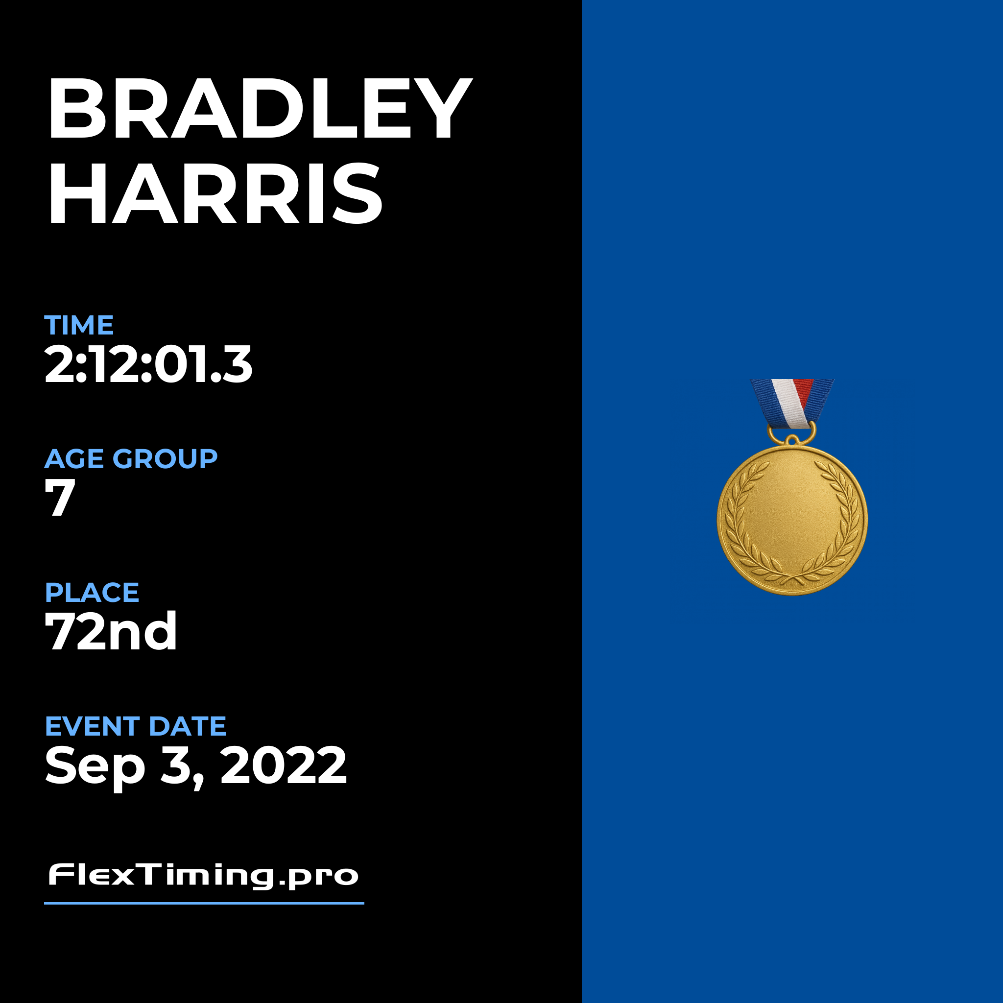 | Age Group Place: | 7 out of 13 Male in your Age Group. |