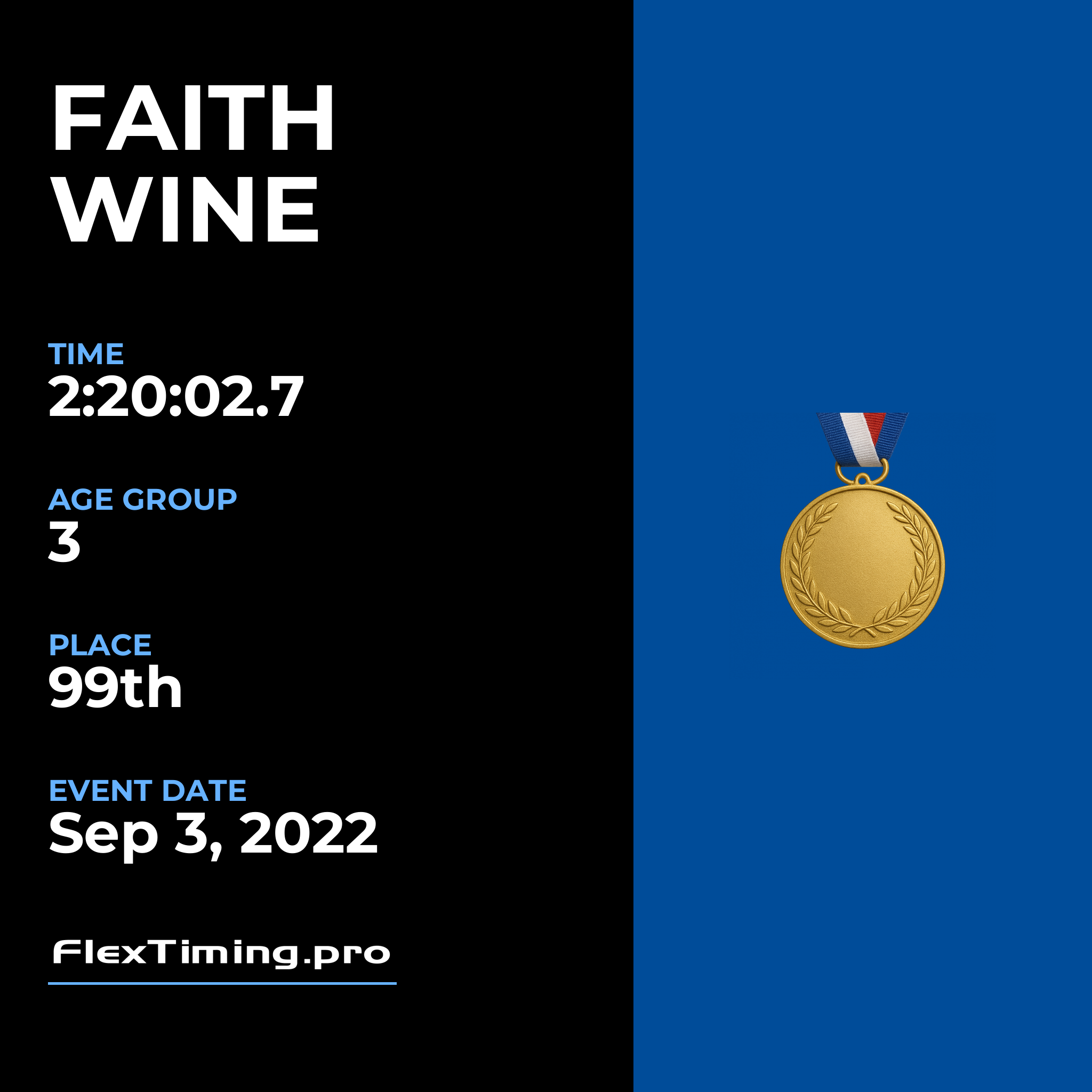 | Age Group Place: | 3 out of 10 Female in your Age Group. |