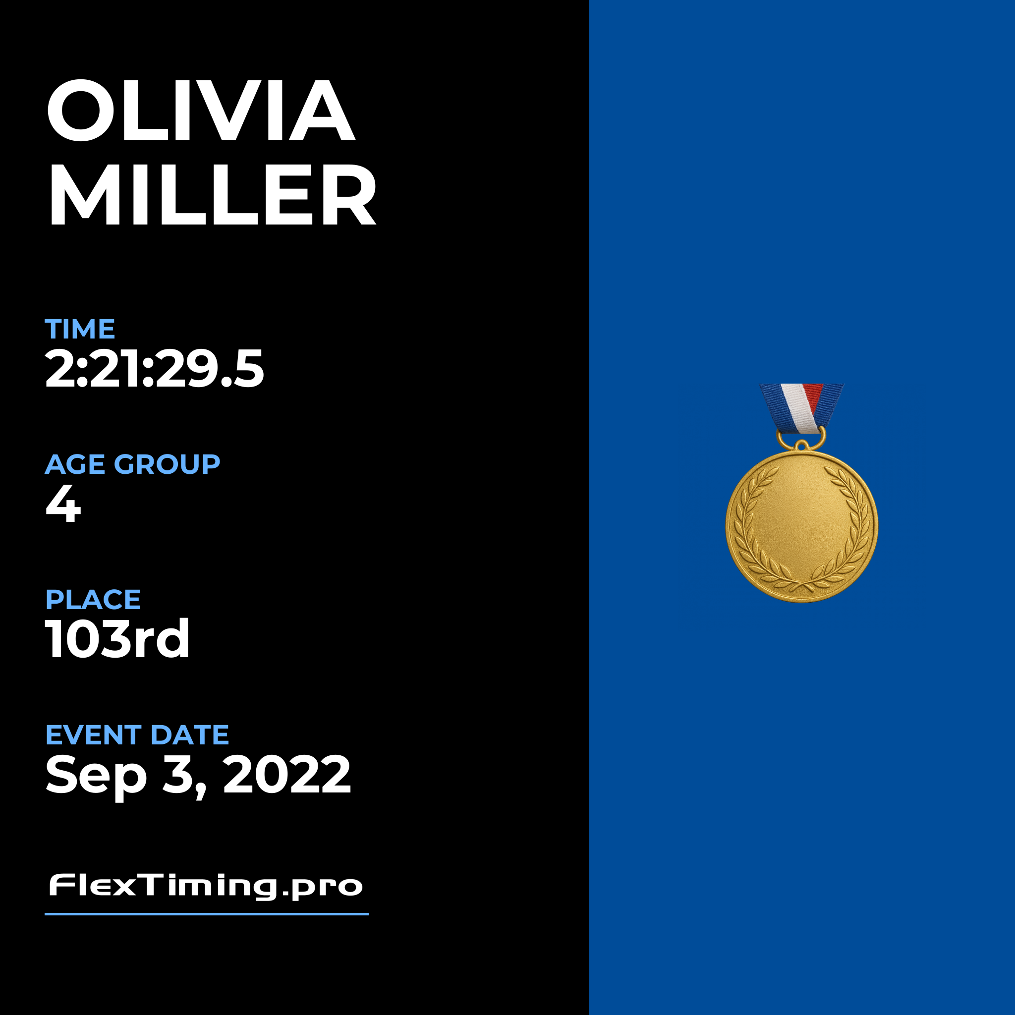 | Age Group Place: | 4 out of 10 Female in your Age Group. |