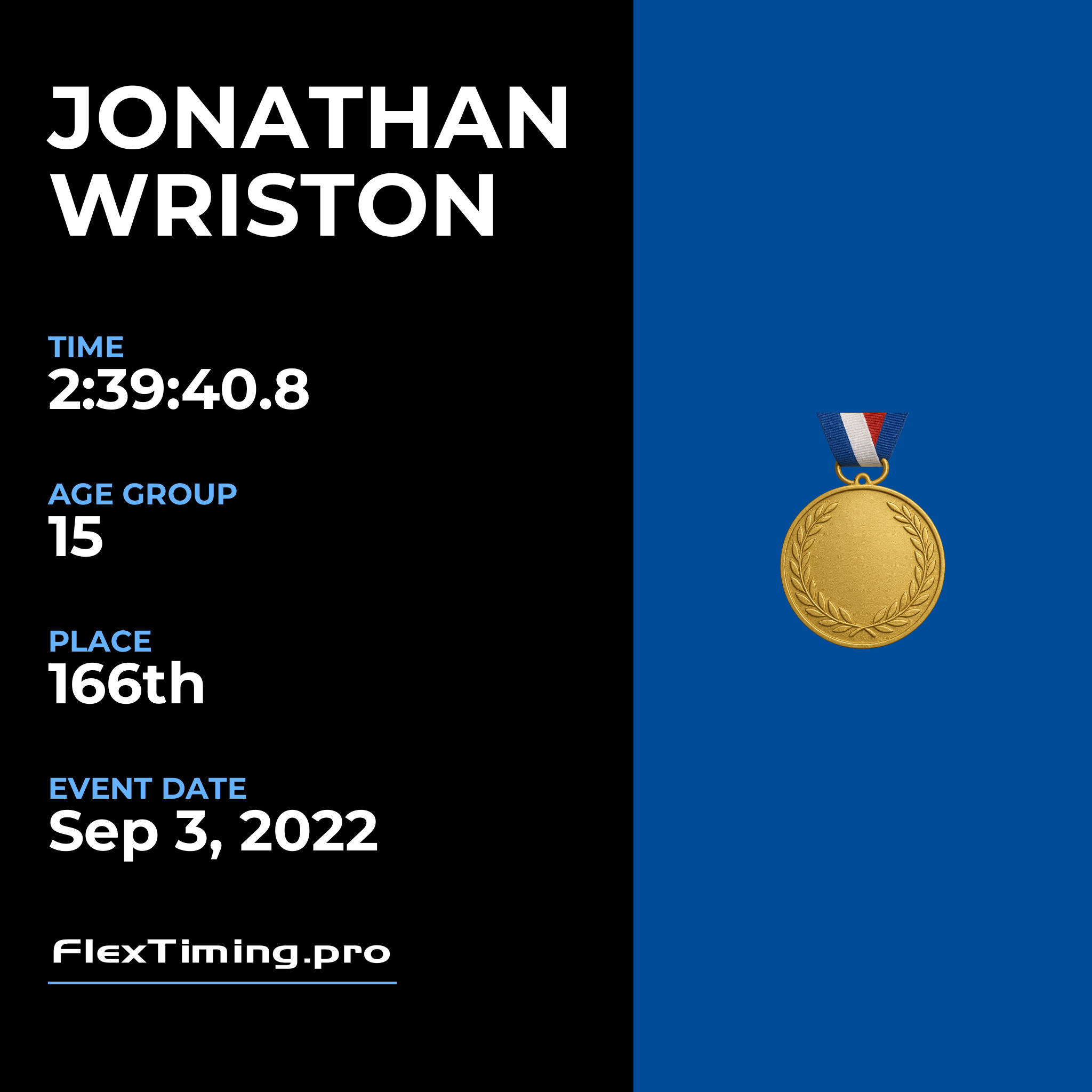 | Age Group Place: | 15 out of 22 Male in your Age Group. |