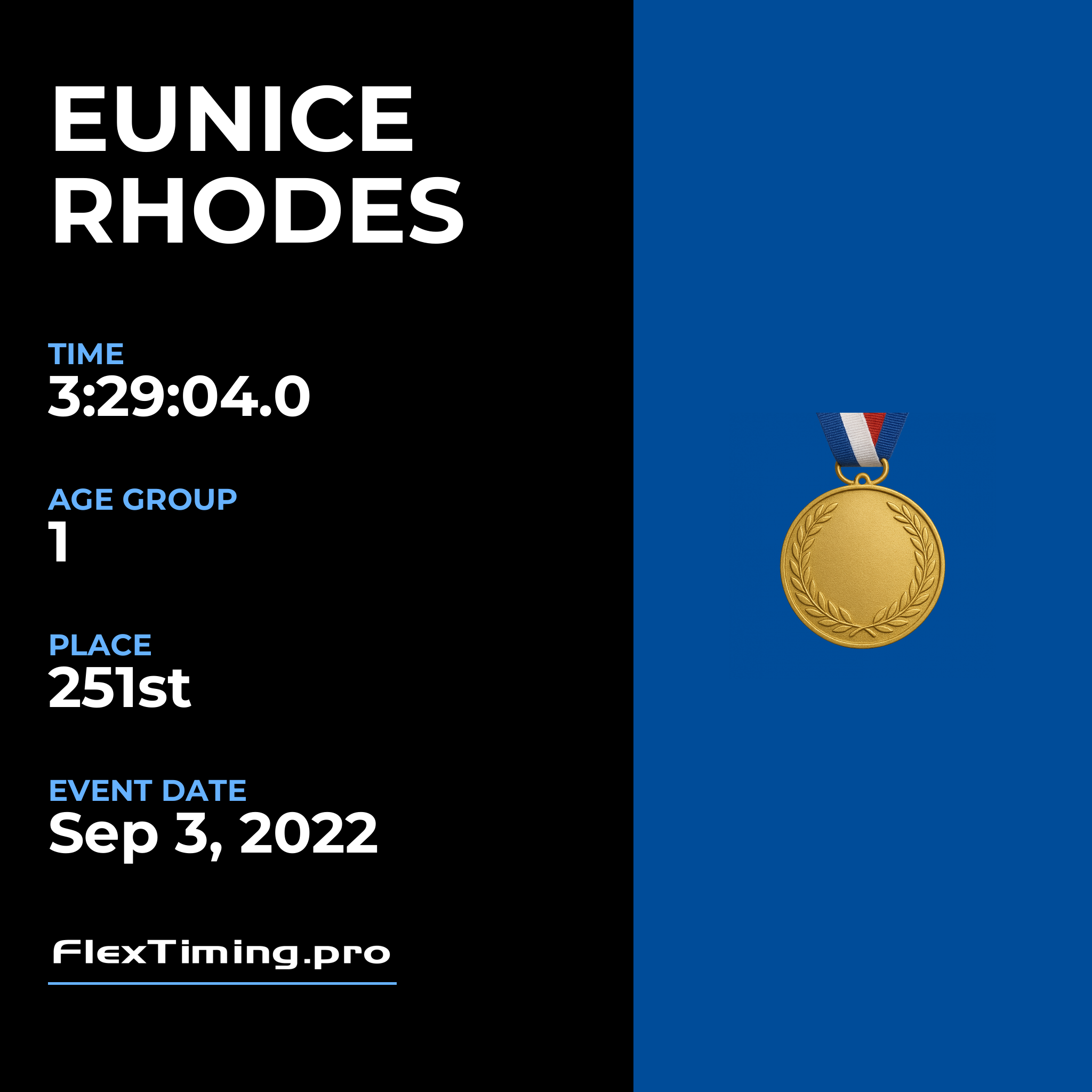 | Age Group Place: | 1 out of 1 Female in your Age Group. |