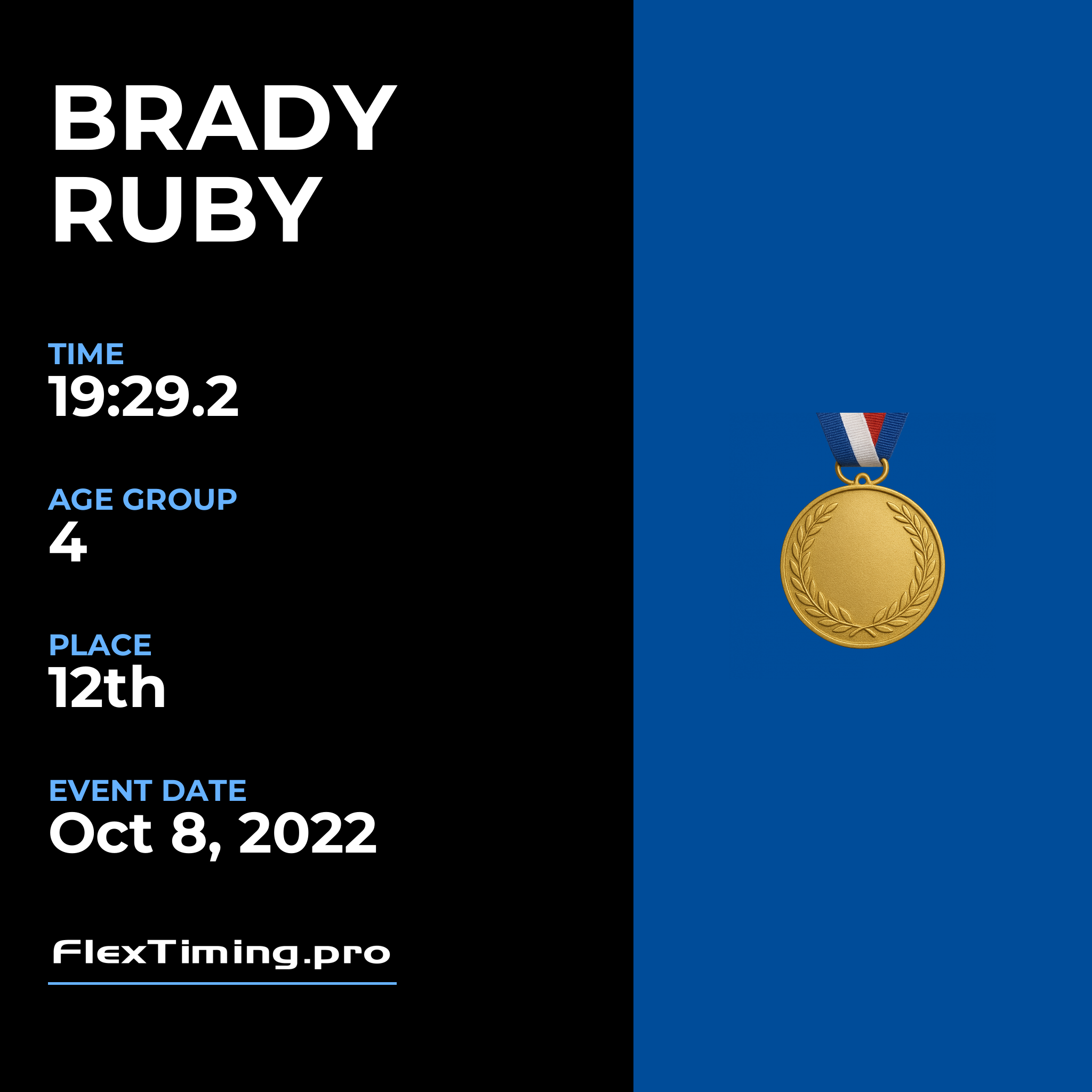 | Age Group Place: | 4 out of 12 Male in your Age Group. |