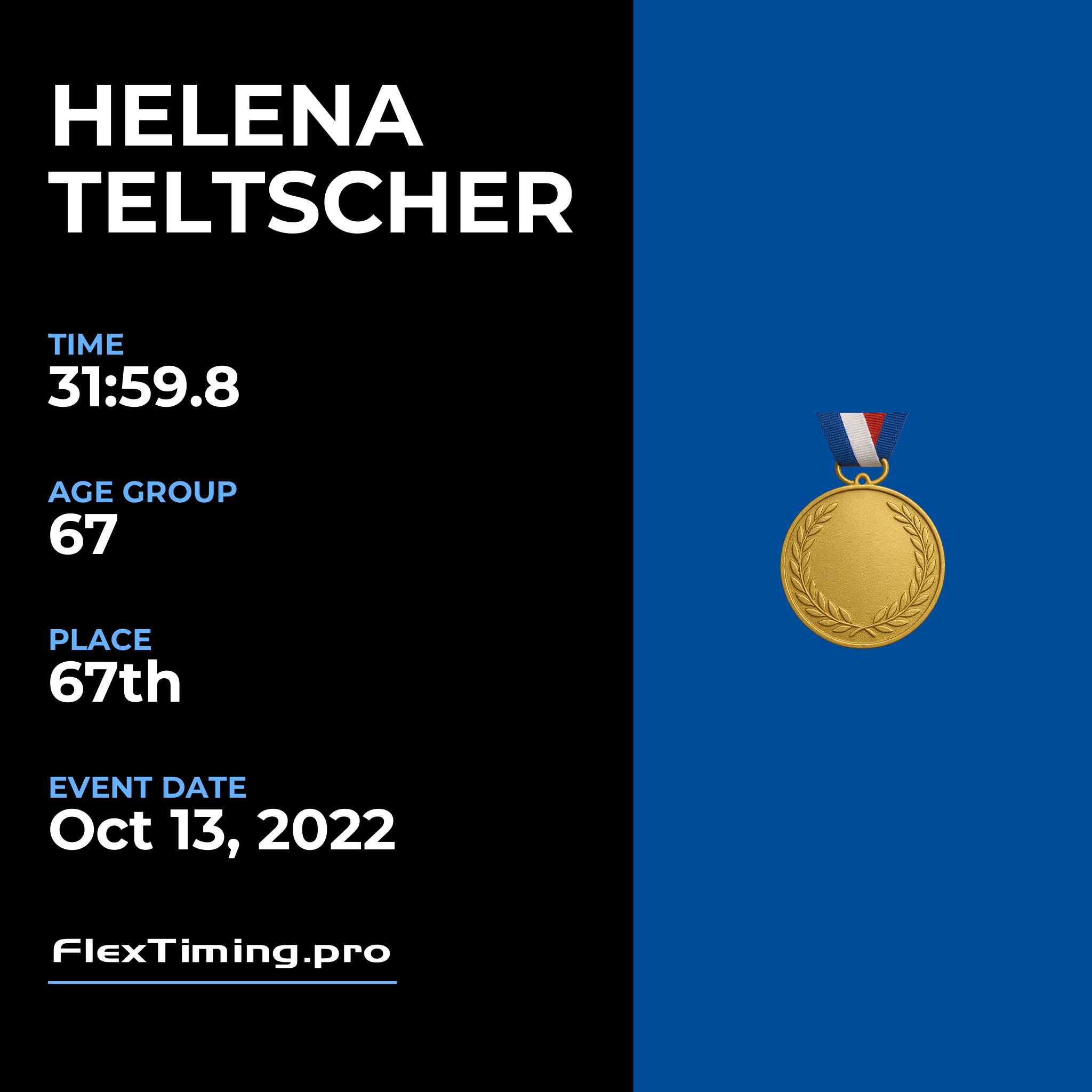 | Age Group Place: | 67 out of 74 Female in your Age Group. |