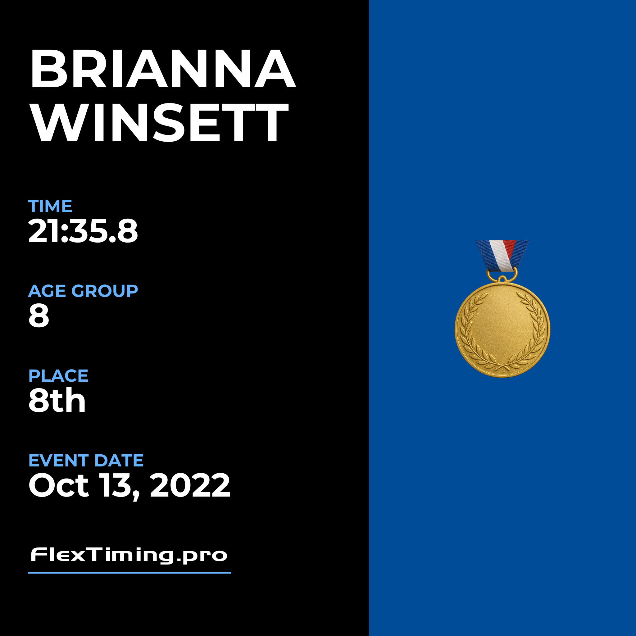 | Age Group Place: | 8 out of 74 Female in your Age Group. |