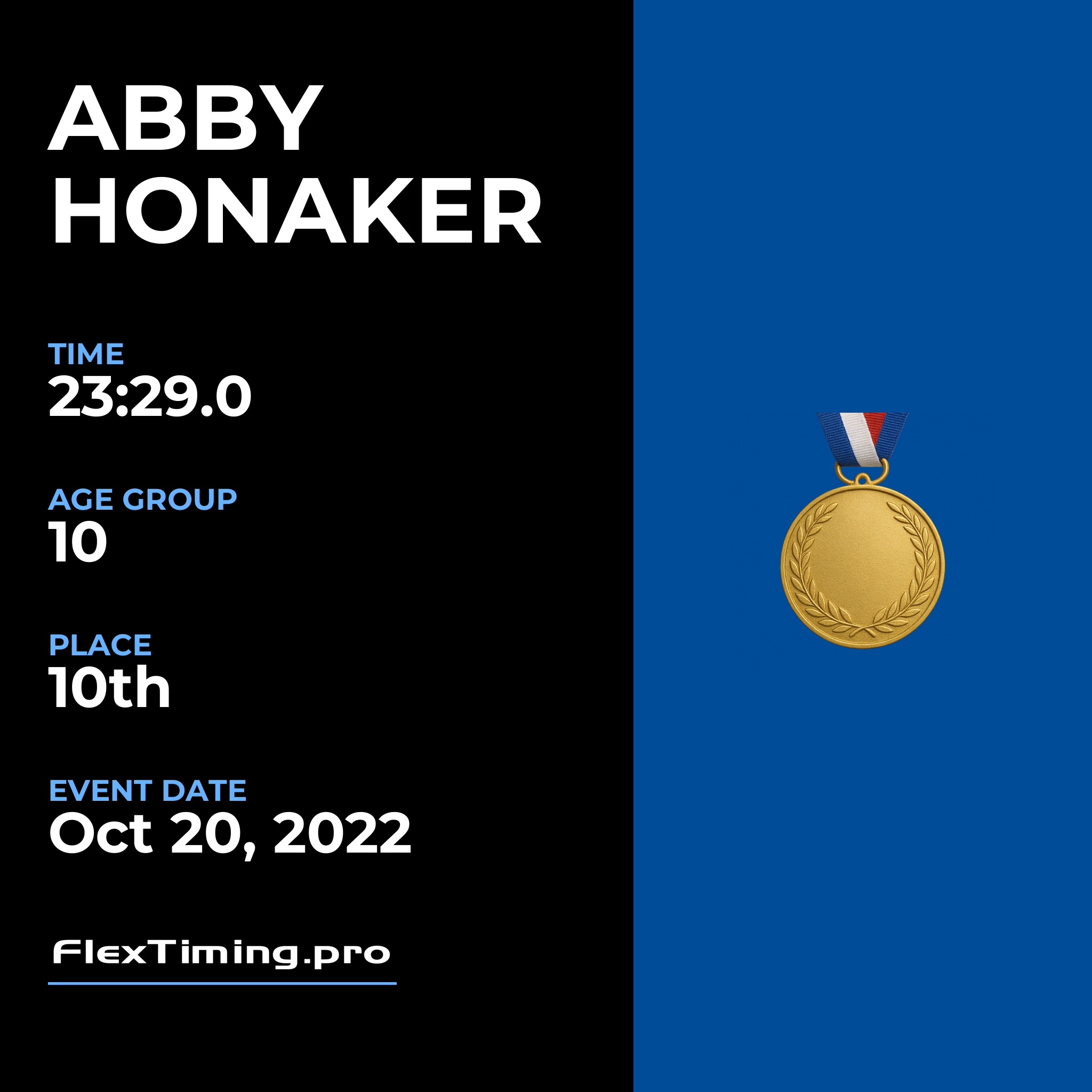 | Age Group Place: | 10 out of 40 Female in your Age Group. |