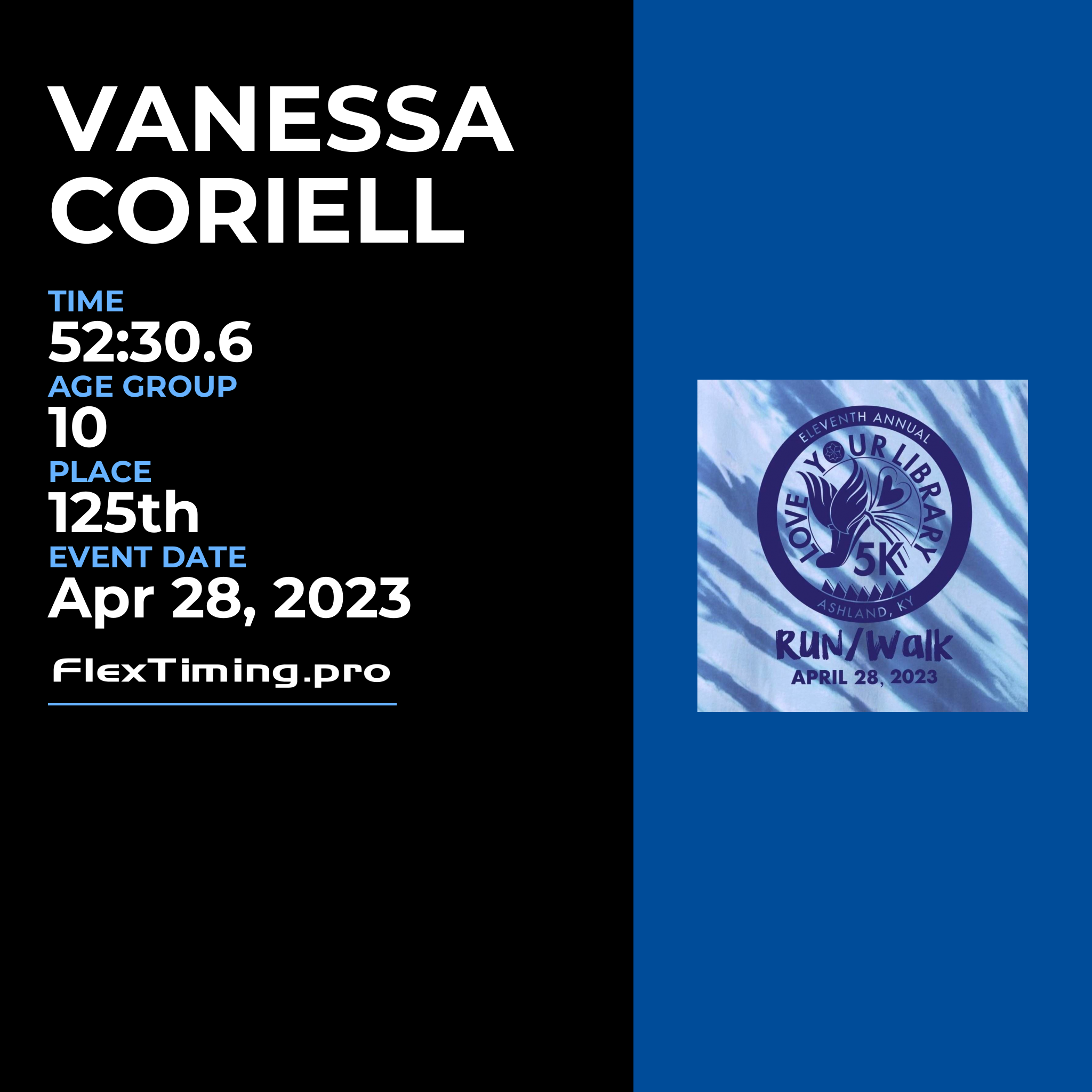 | Age Group Place: | 10 out of 11 Female in your Age Group. |