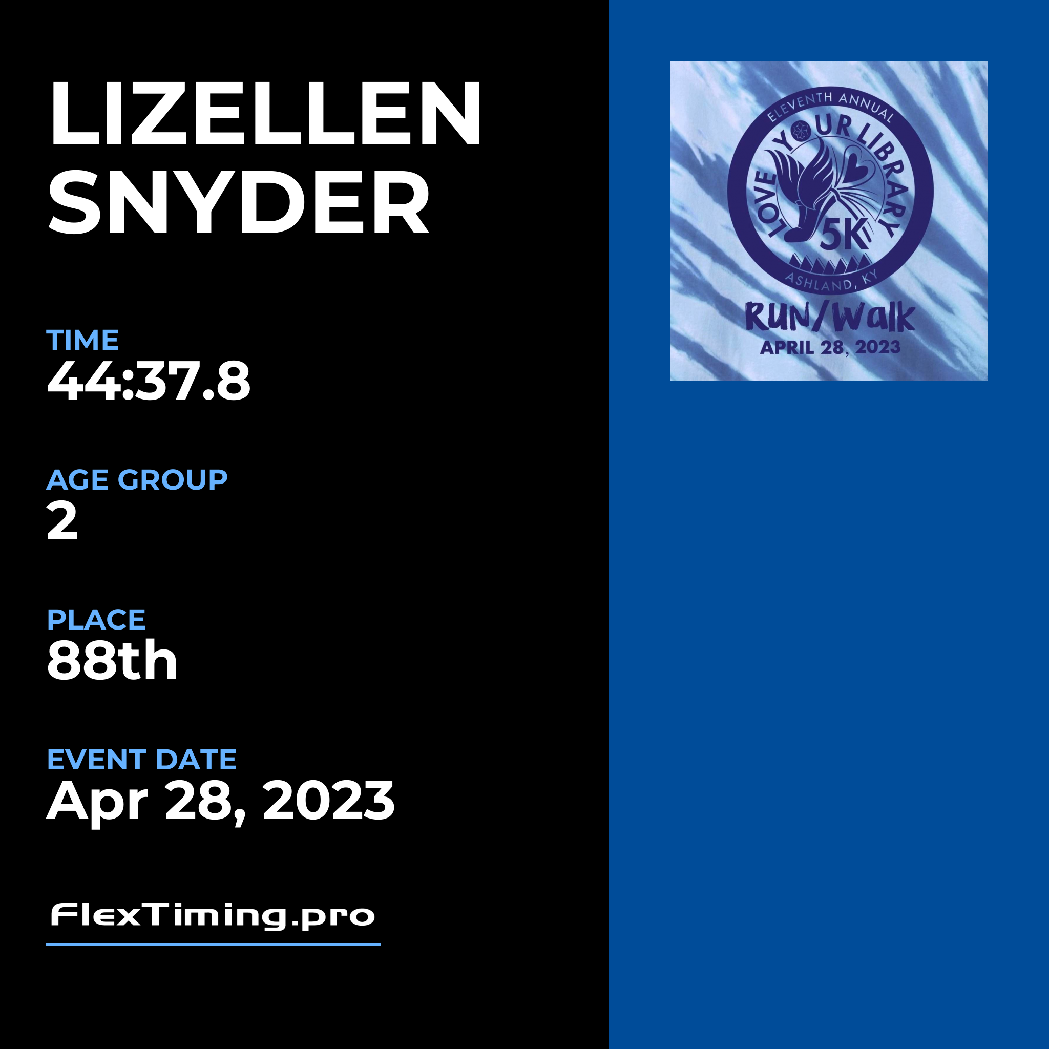 | Age Group Place: | 2 out of 4 Female in your Age Group. |