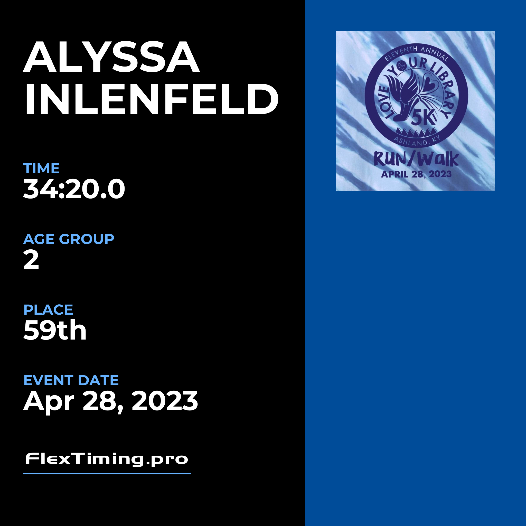| Age Group Place: | 2 out of 4 Female in your Age Group. |