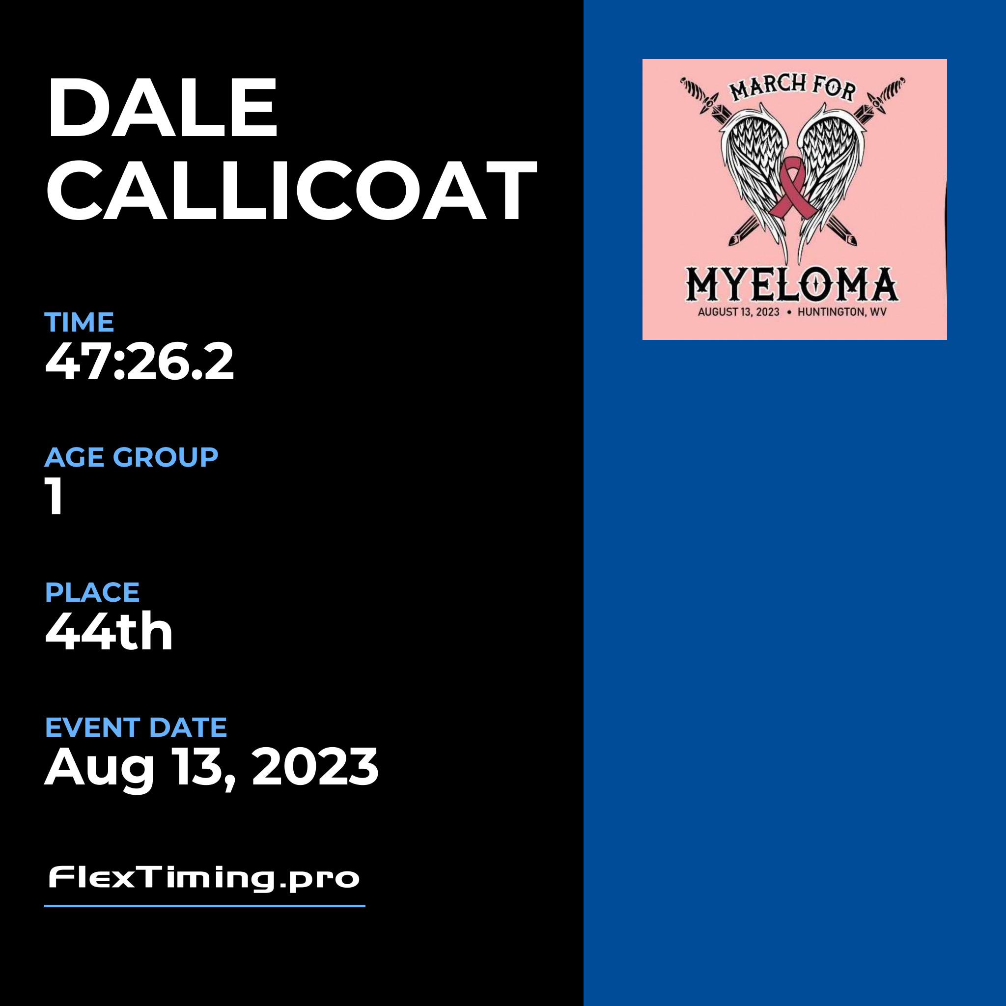 | Age Group Place: | 1 out of 1 Male in your Age Group. |