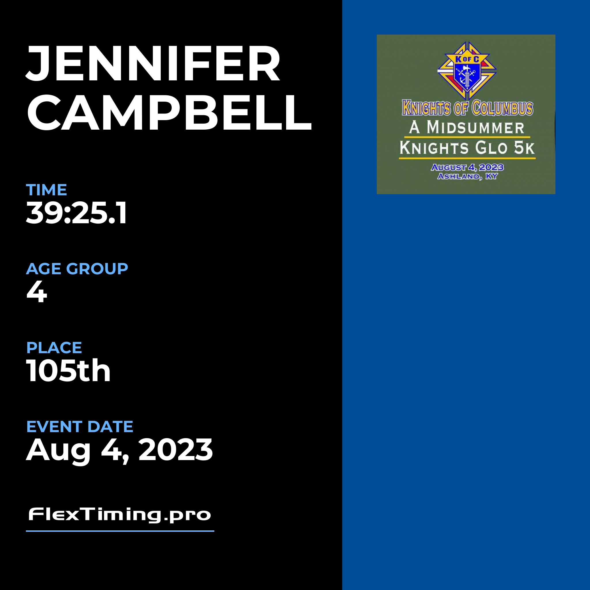 | Age Group Place: | 4 out of 4 Female in your Age Group. |