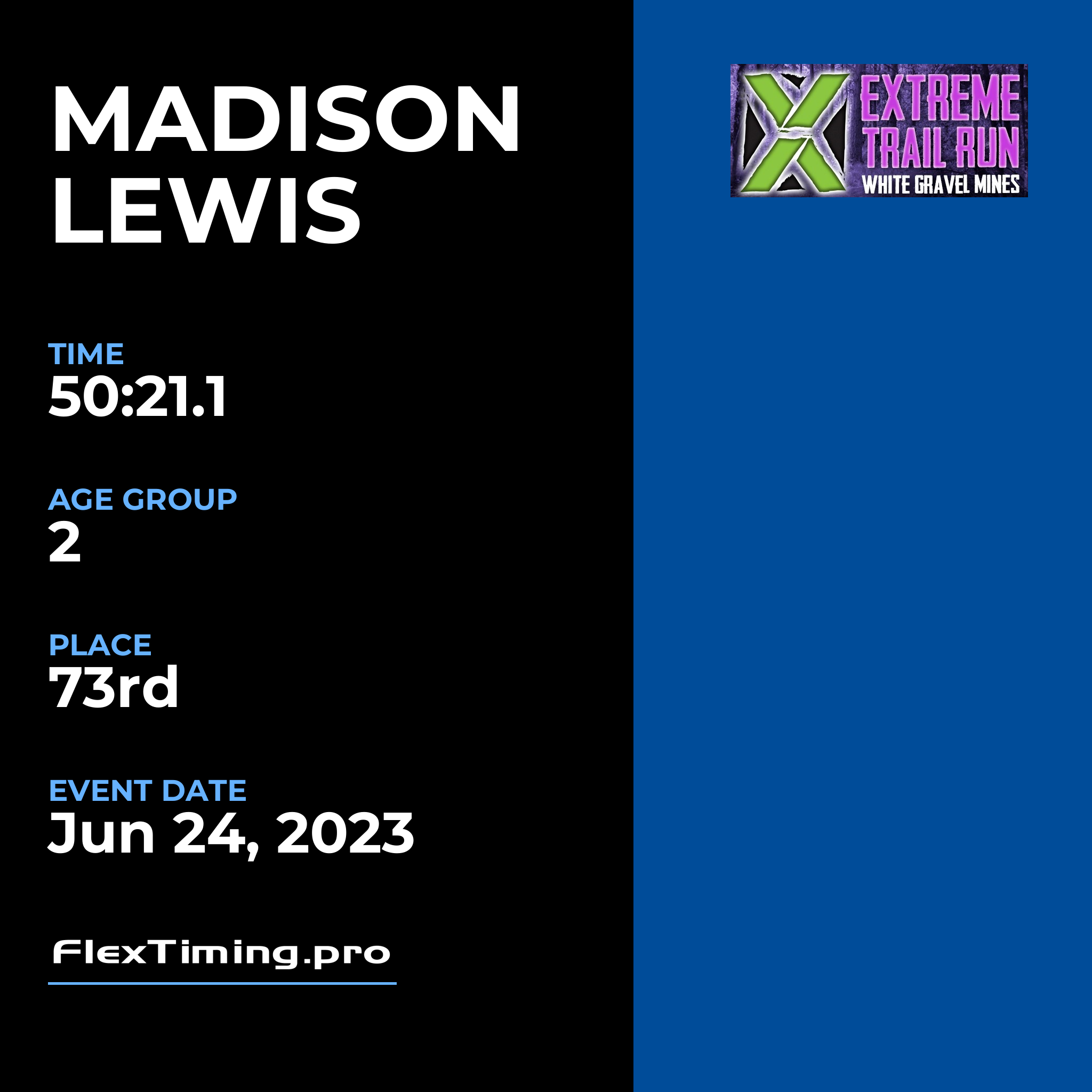 | Age Group Place: | 2 out of 21 Female in your Age Group. |
