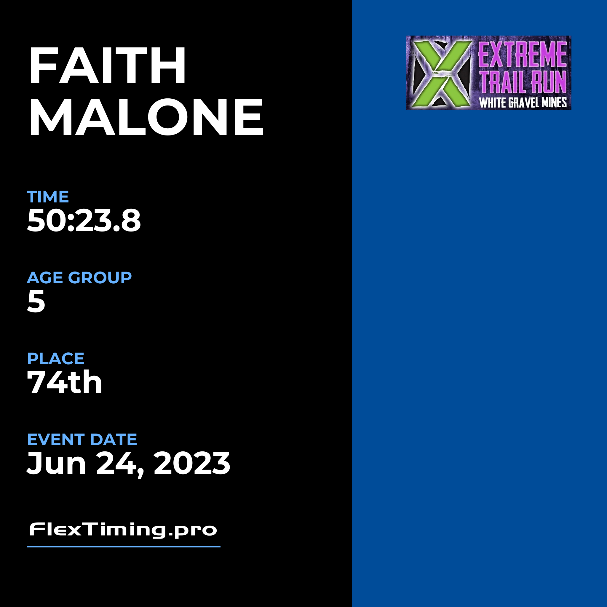 | Age Group Place: | 5 out of 18 Female in your Age Group. |