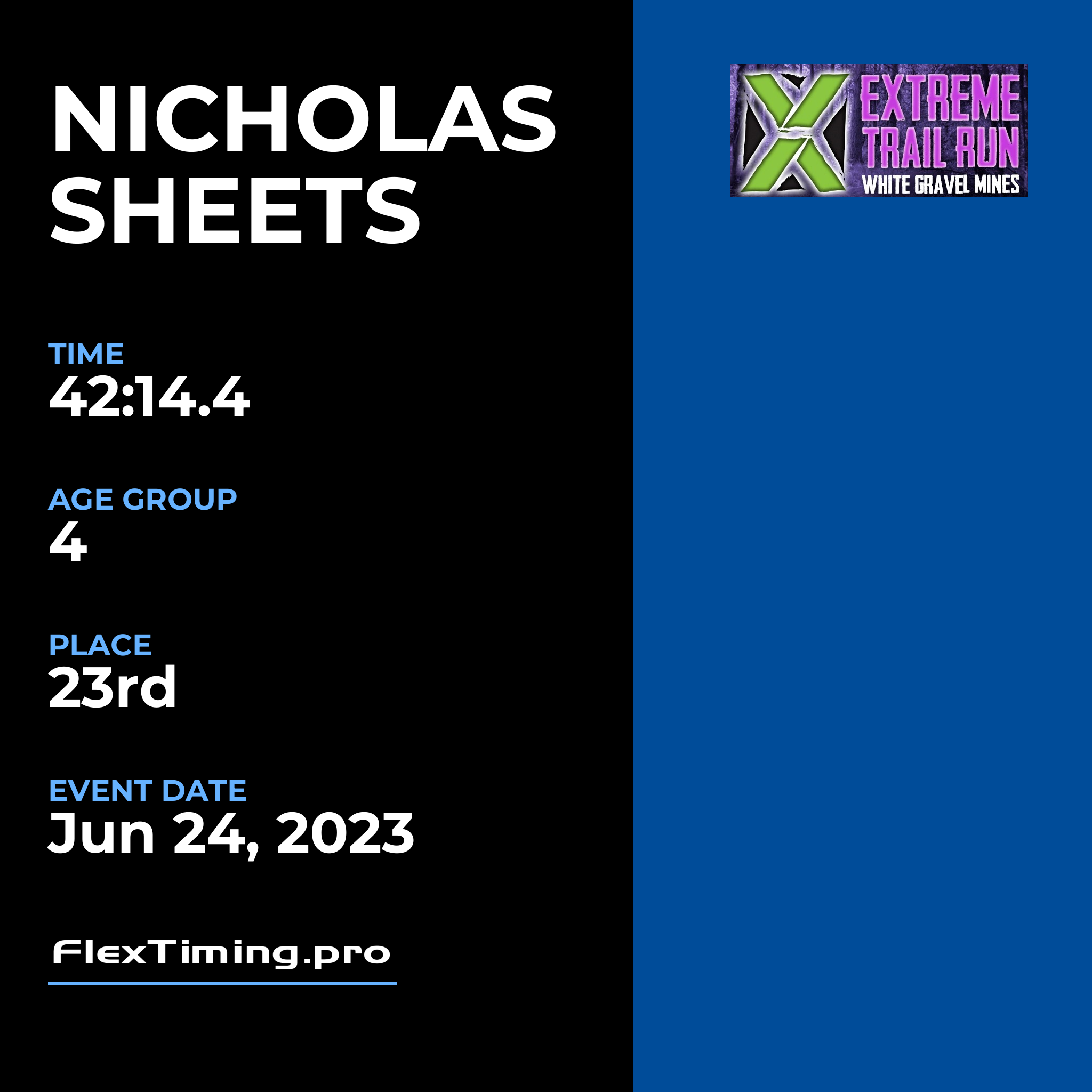 | Age Group Place: | 4 out of 26 Male in your Age Group. |