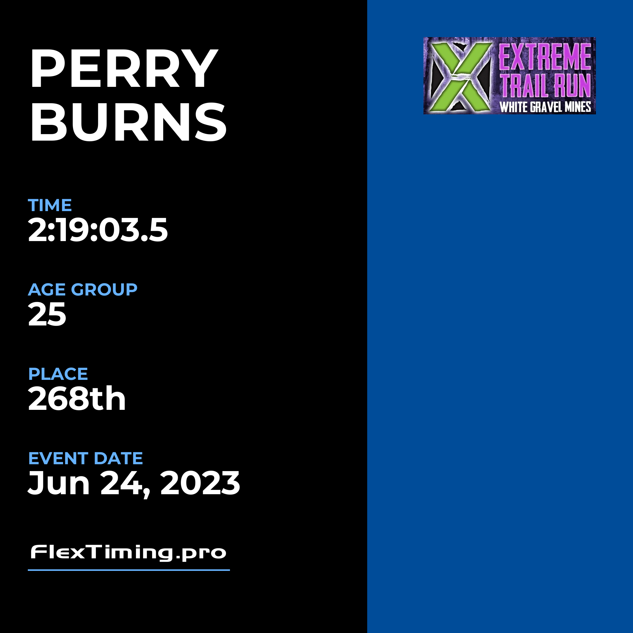 | Age Group Place: | 25 out of 25 Male in your Age Group. |