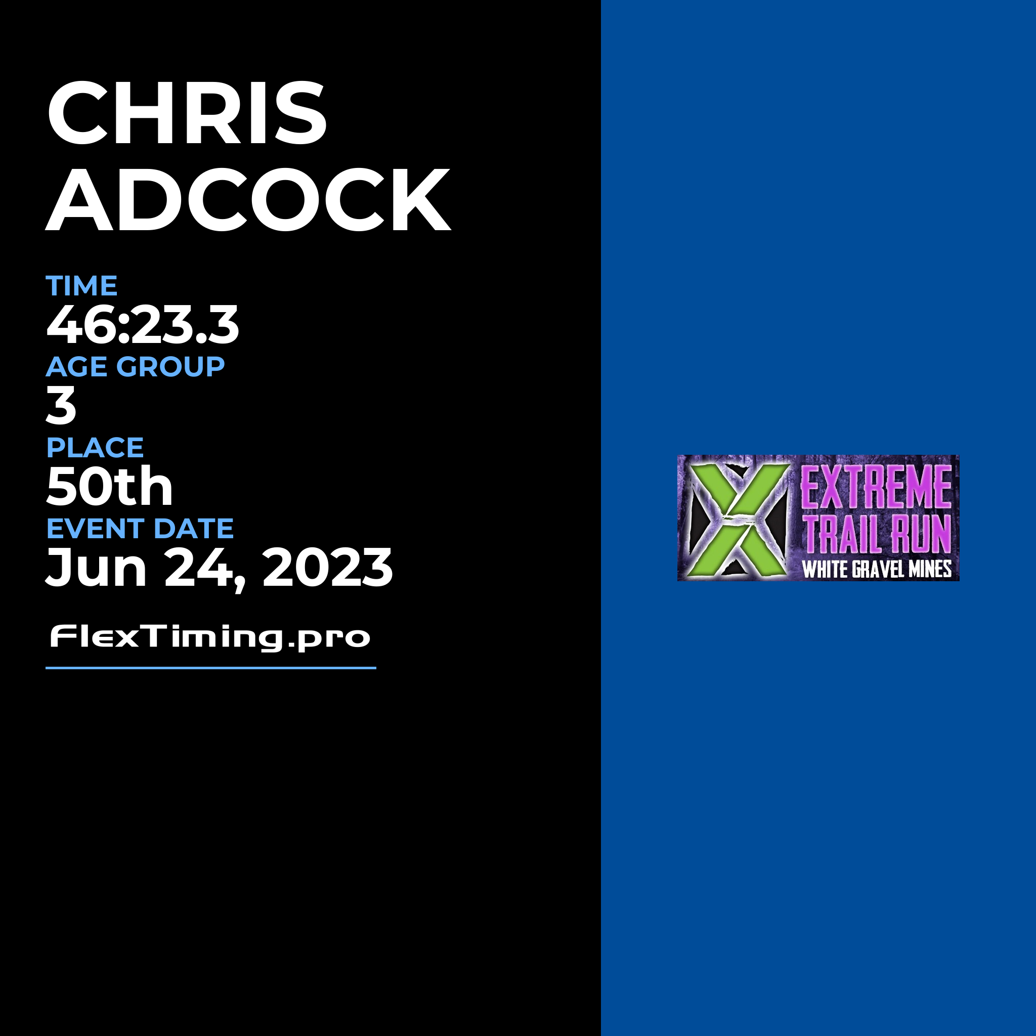 | Age Group Place: | 3 out of 10 Male in your Age Group. |