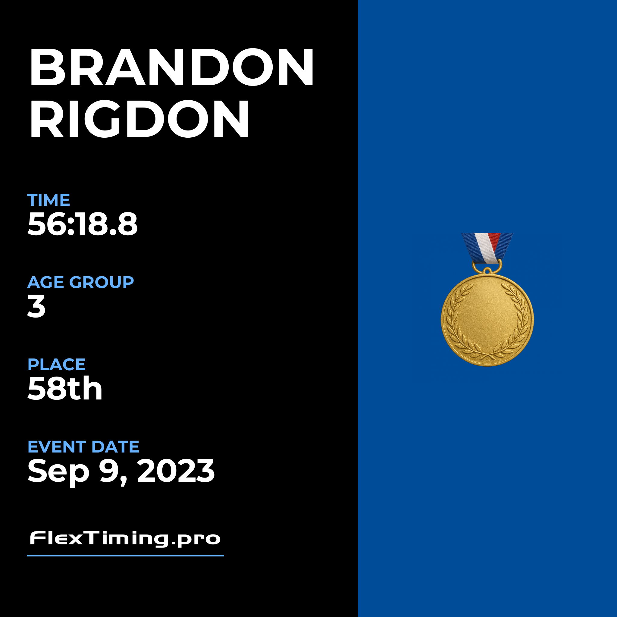 | Age Group Place: | 3 out of 3 Male in your Age Group. |