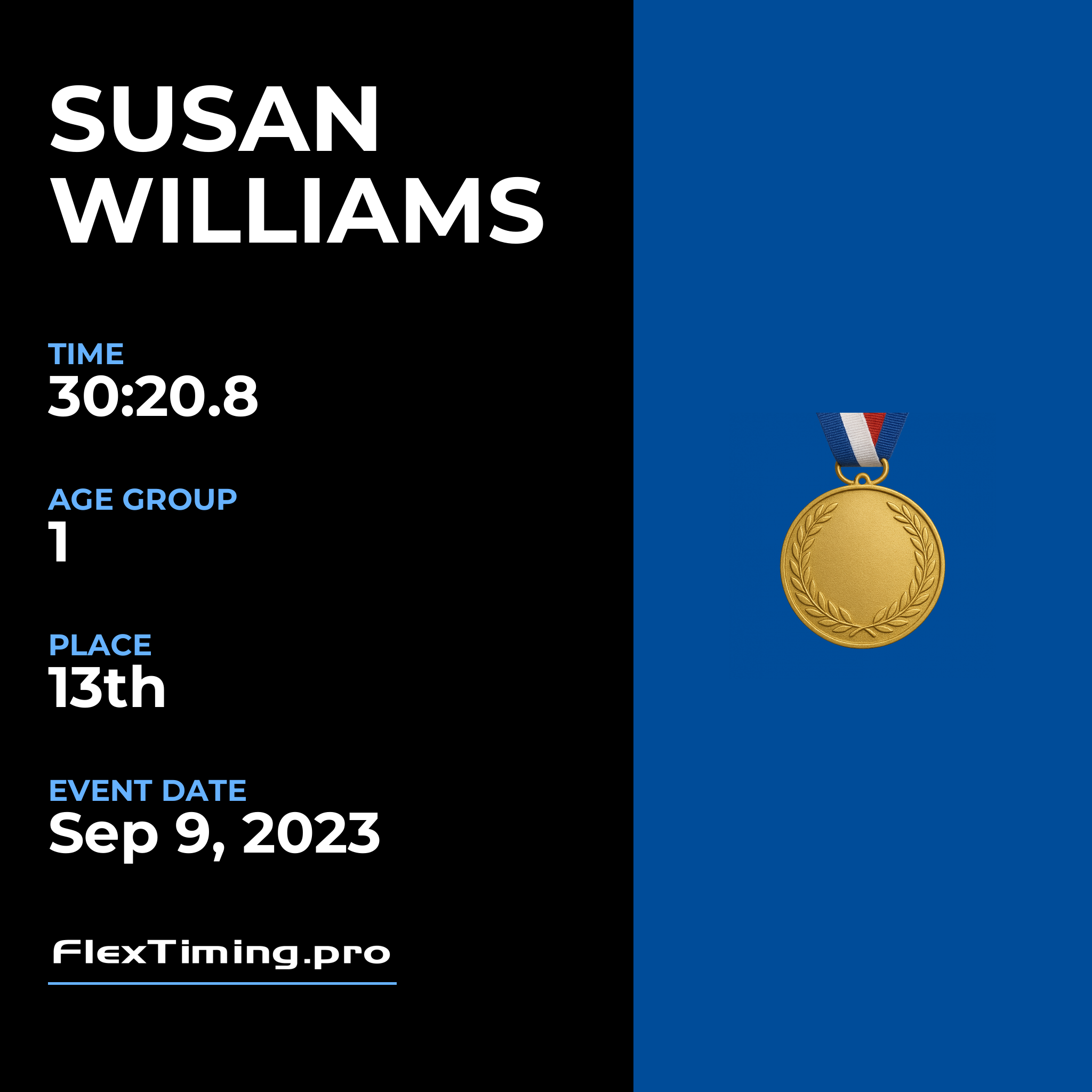 | Age Group Place: | 1 out of 6 Female in your Age Group. |
