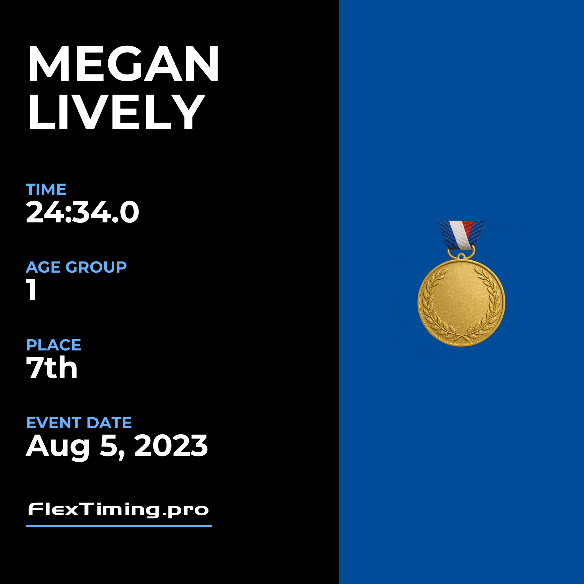 | Age Group Place: | 1 out of 3 Female in your Age Group. |