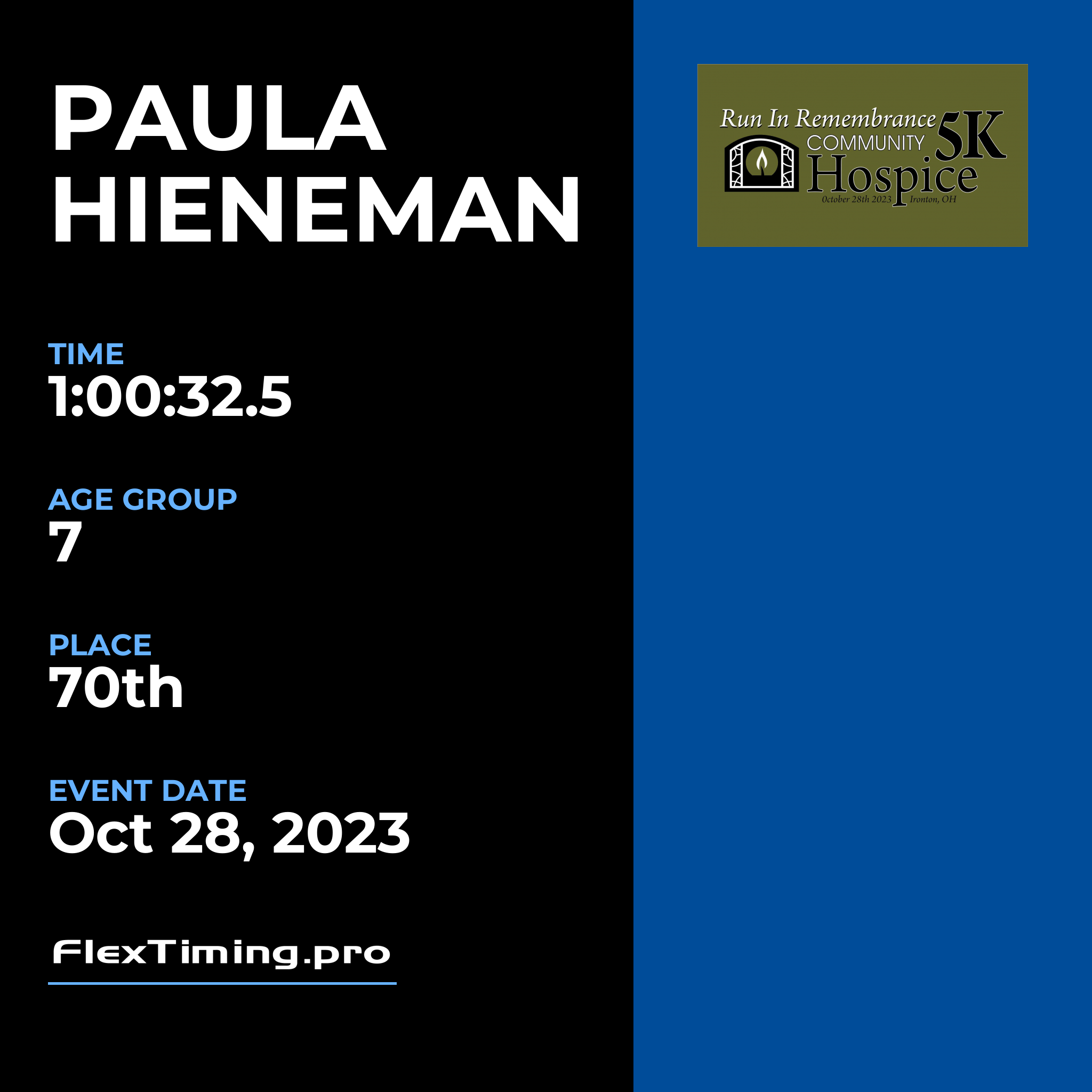 | Age Group Place: | 7 out of 7 Female in your Age Group. |