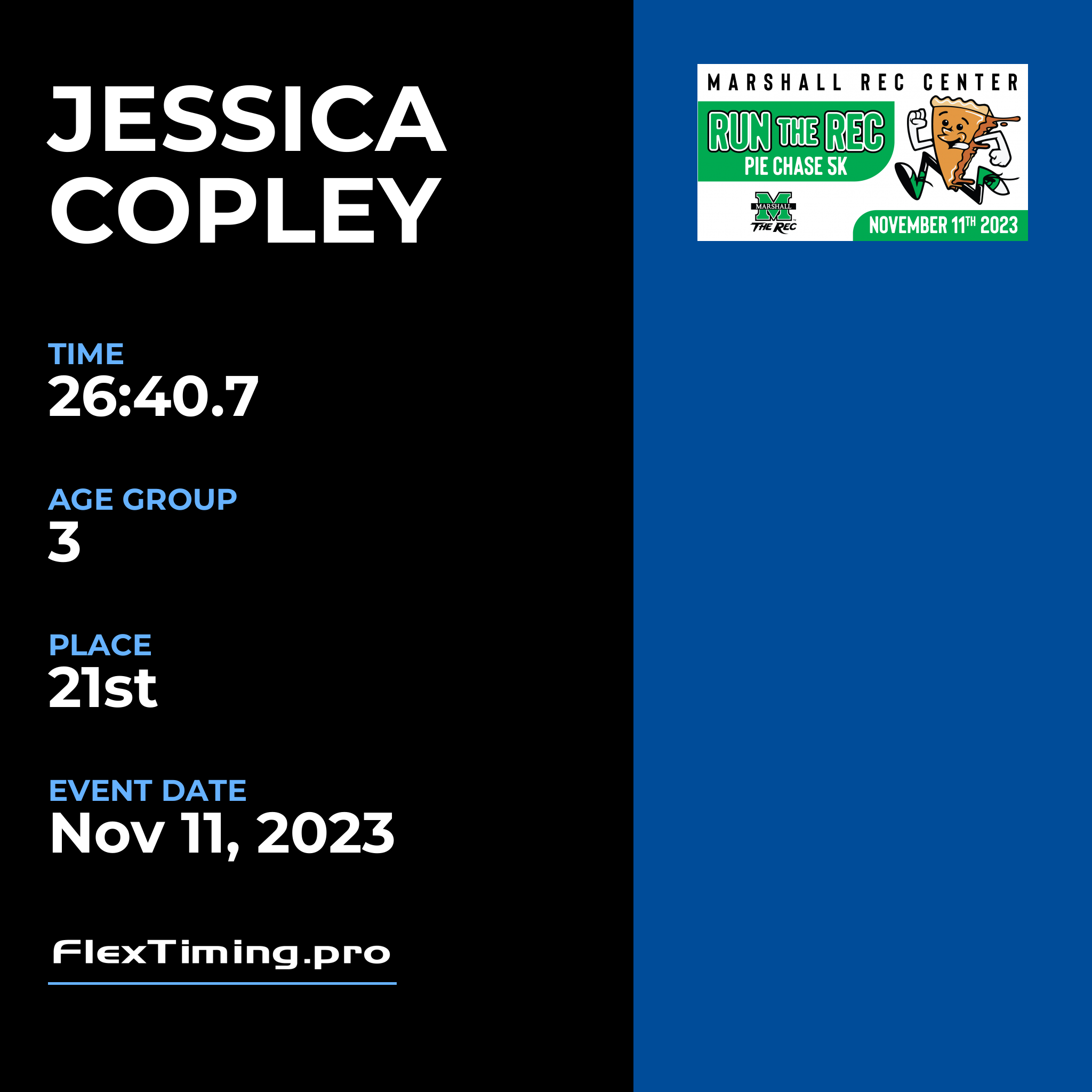 | Age Group Place: | 3 out of 11 Female in your Age Group. |