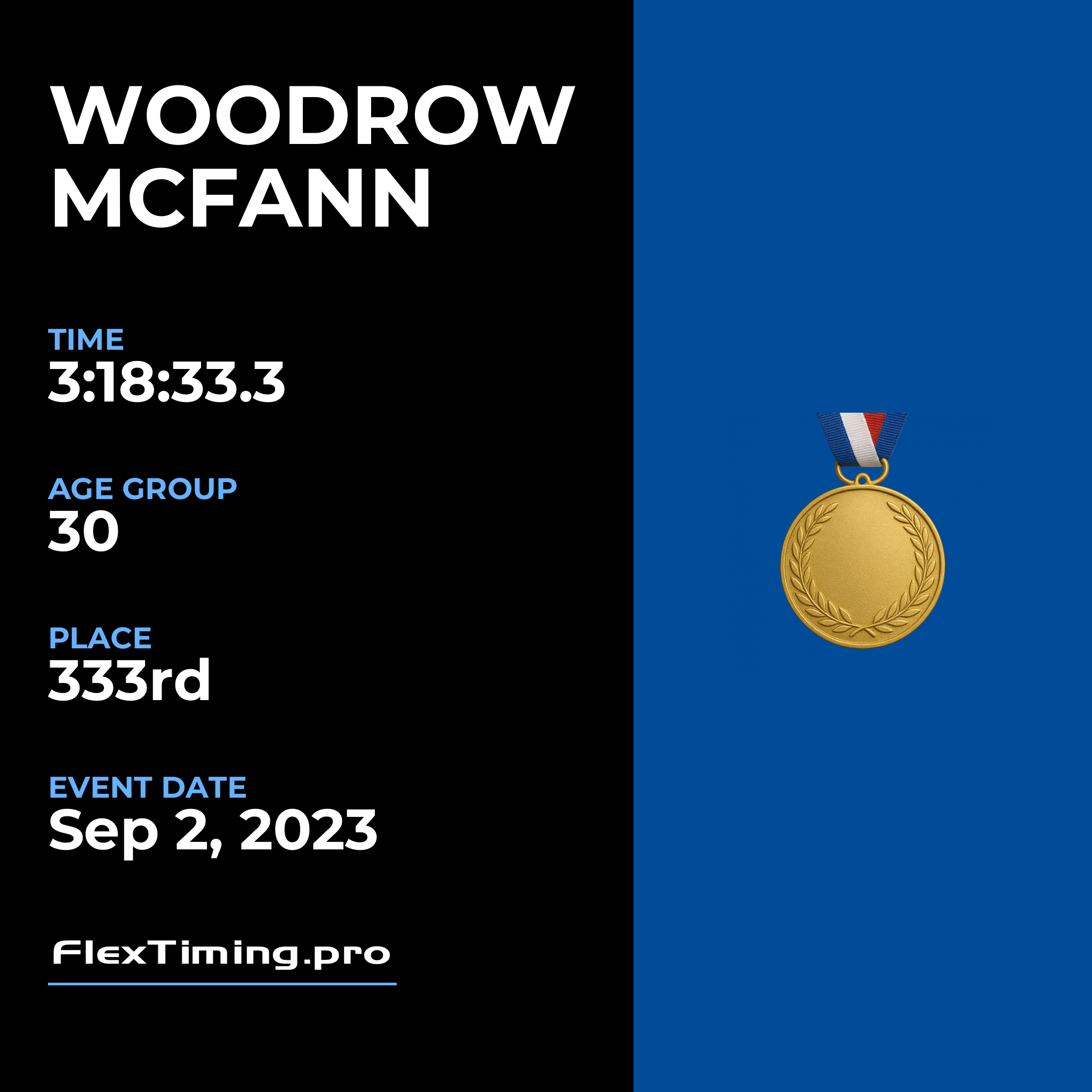 | Age Group Place: | 30 out of 32 Male in your Age Group. |