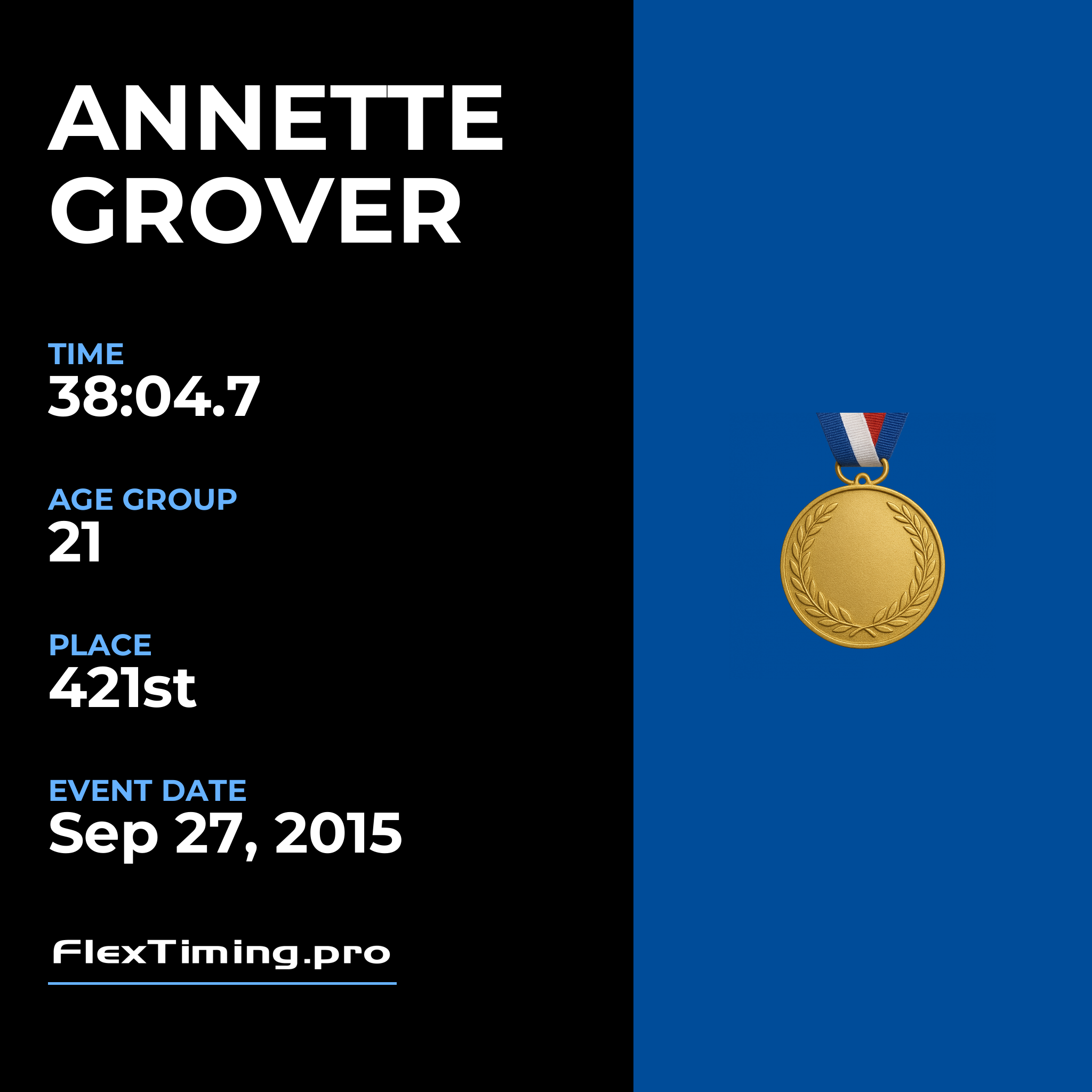 | Age Group Place: | 21 out of 117 Female in your Age Group. |