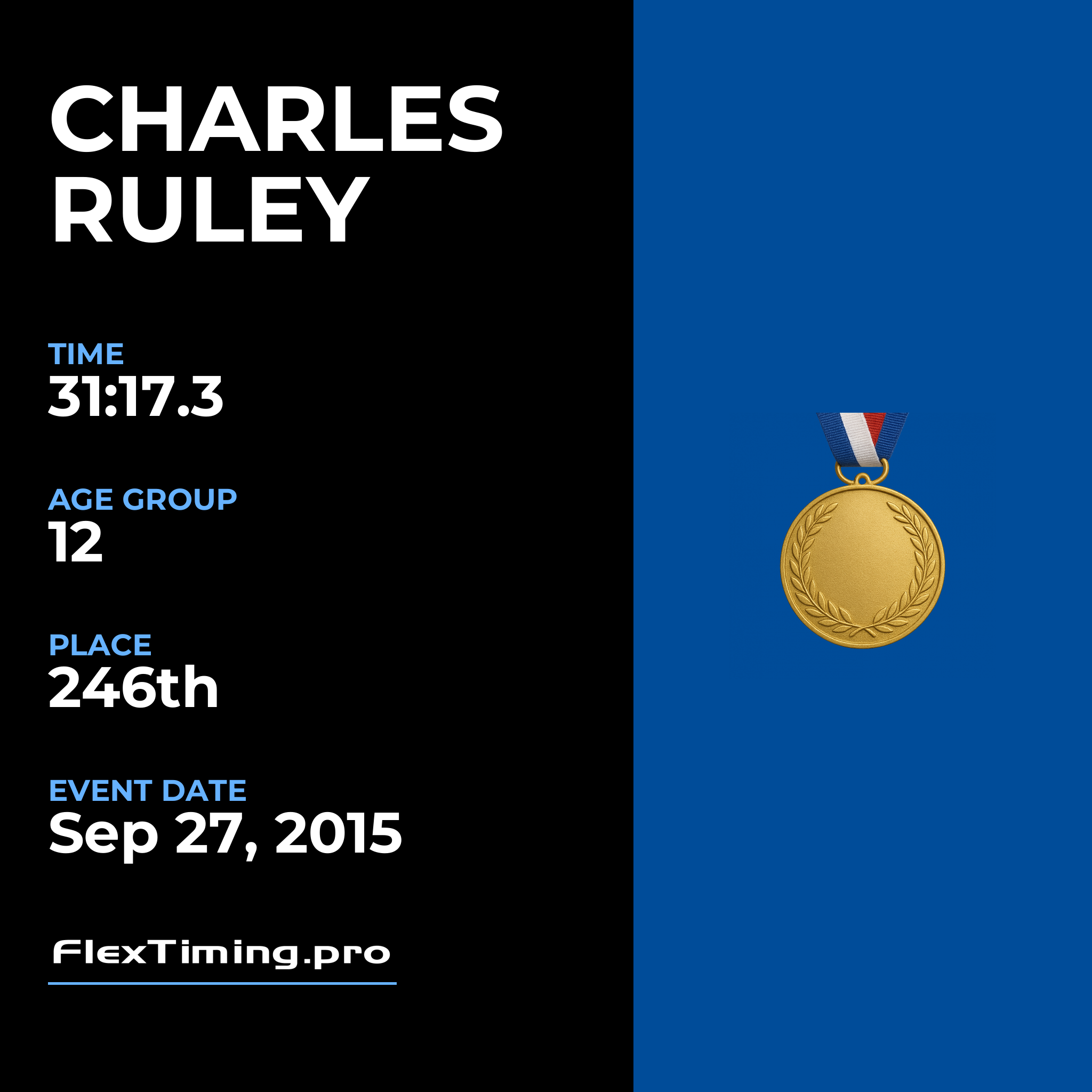 | Age Group Place: | 12 out of 40 Male in your Age Group. |