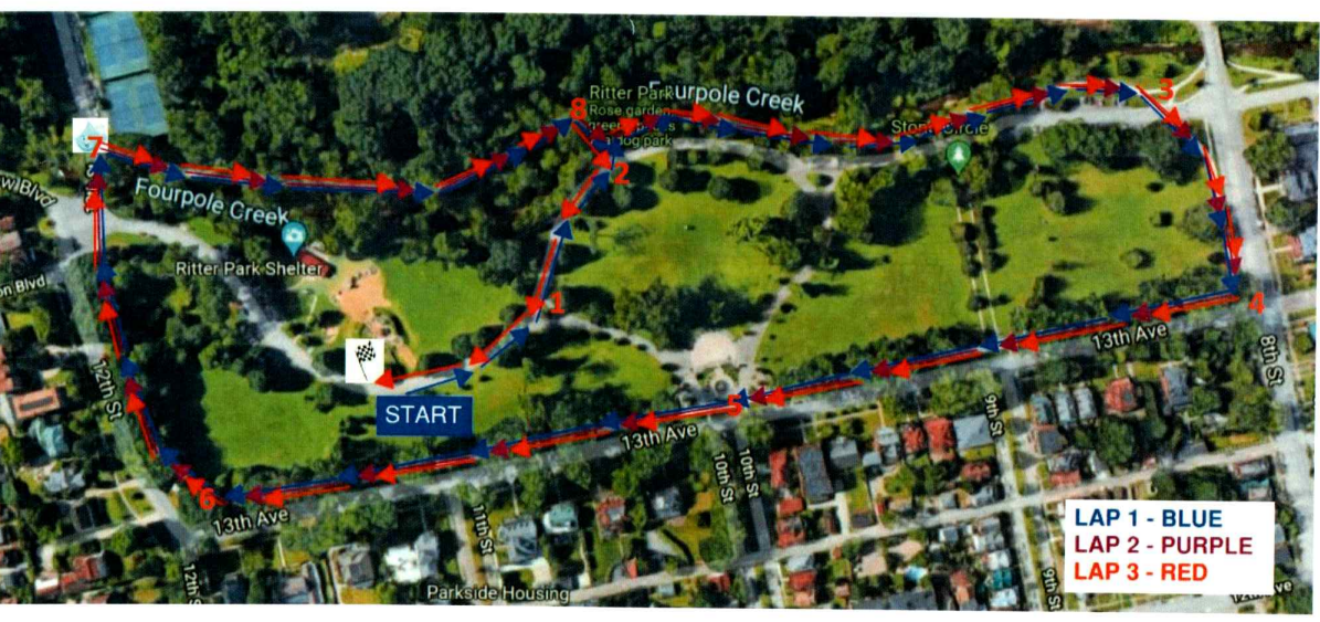 The 5k event will use the Ritter Park course. A course map is available.